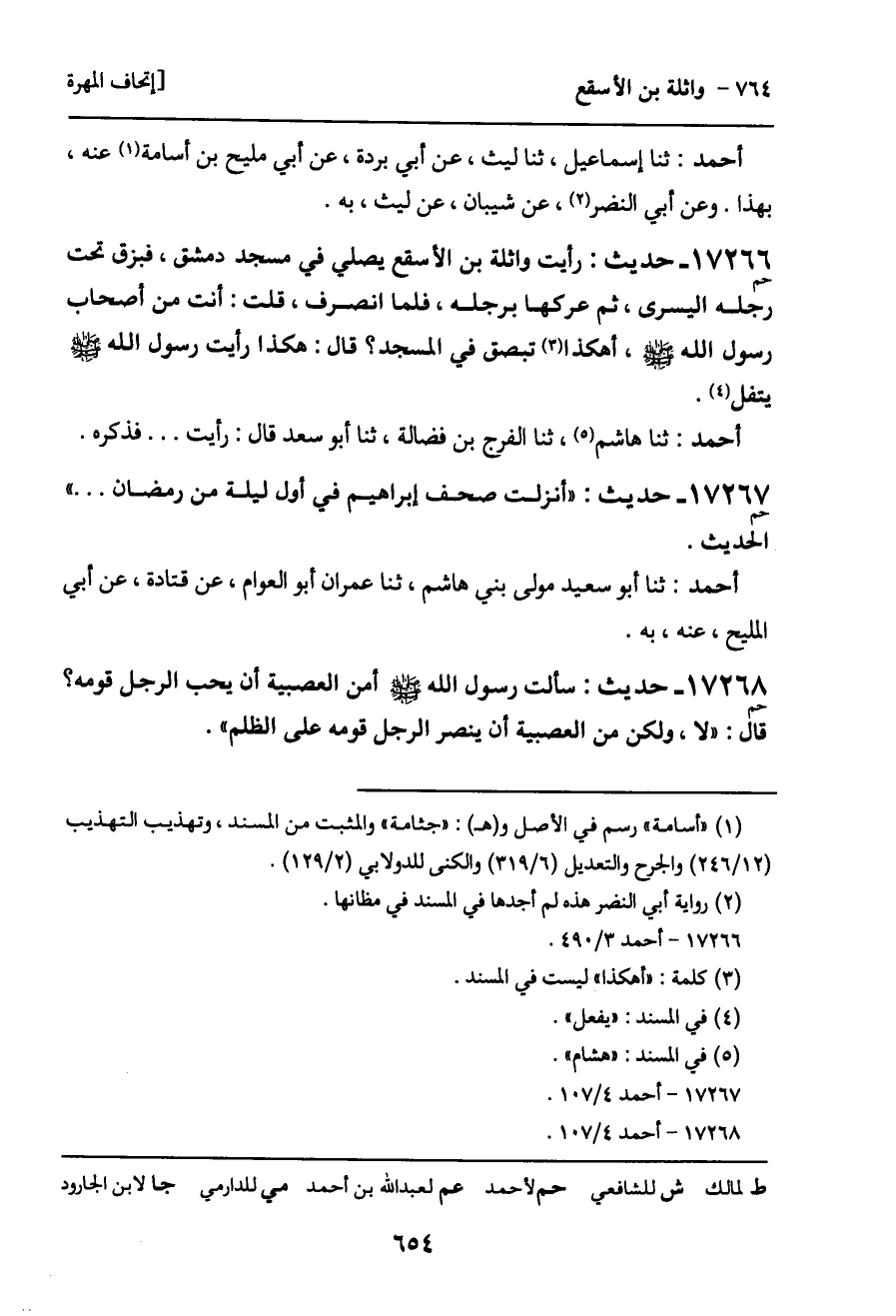 قال عبد الله بن أحمد: سمعت من يذكره من أهل العلم، أن أباها واثلة بن الأسقع، ورأيت أبي جعل هذا الحديث في آخر أحاديث واثلة.