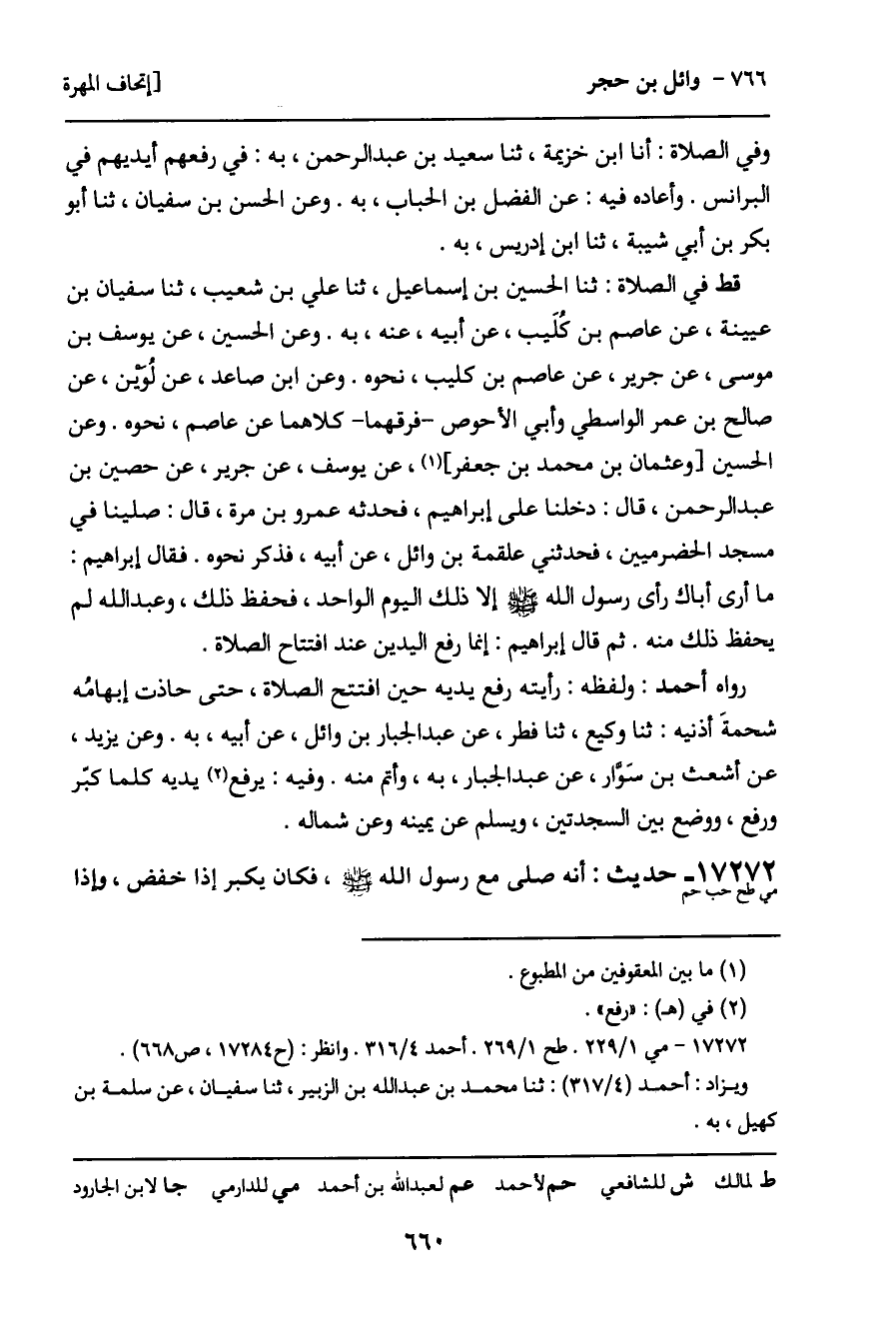 طح فيه: ثنا محمد بن خزيمة، ثنا عبد الله بن رجاء، أنا شعبة، به. وثنا أبو بكرة، ثنا أبو داود، ثنا شعبة، عن سلمة بن كُهَيْل، سمعت حُجْرا أبا عنبس، عن وائل، نحوه.