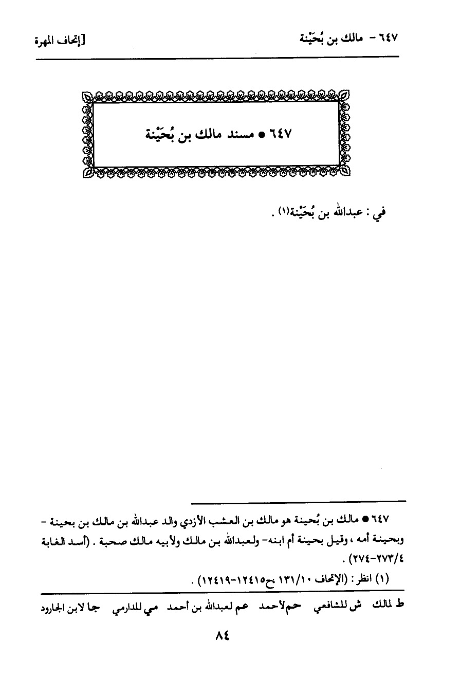 647 ـ مسند مالك بن بحَينة