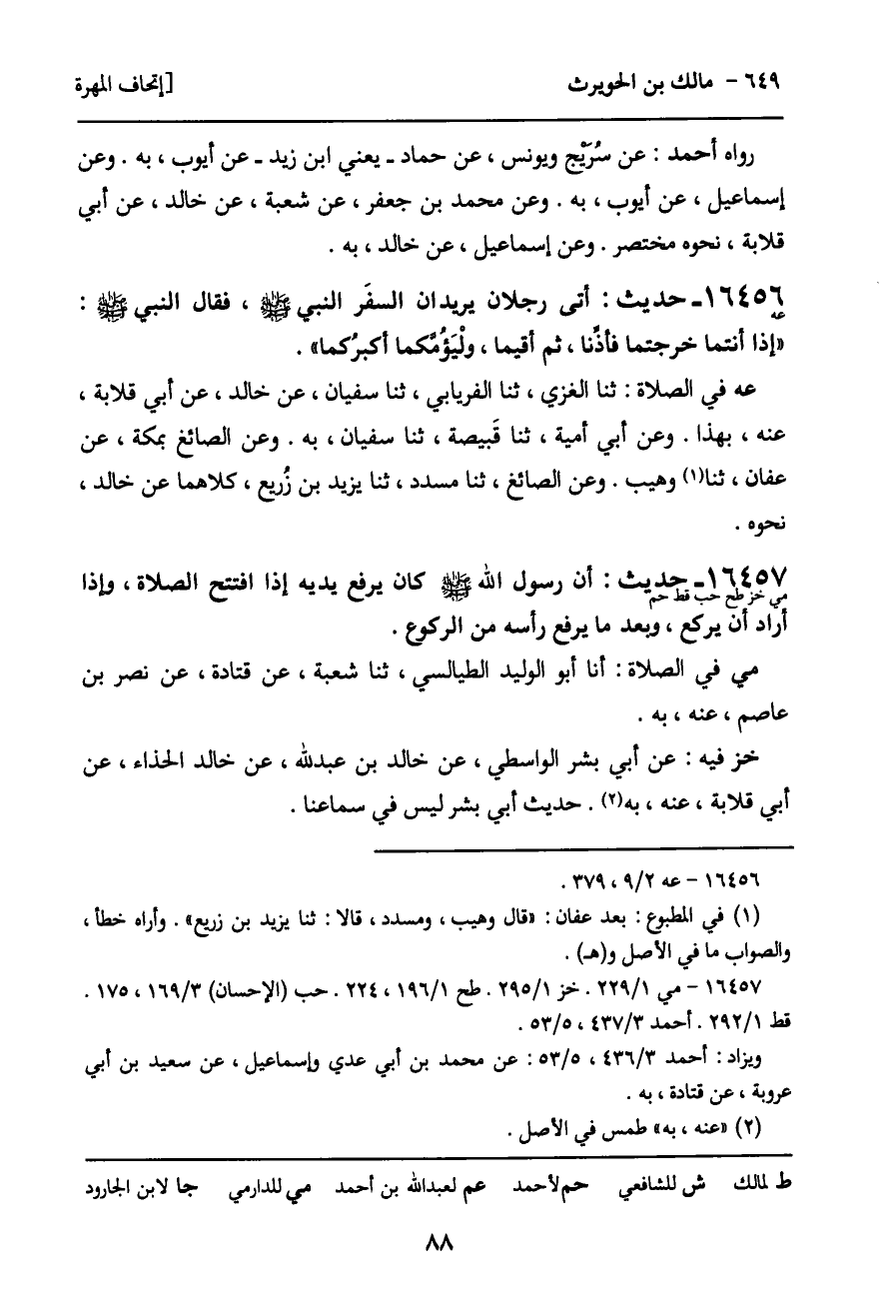 عه في الصلاة: ثنا الغزي، ثنا الفريابي، ثنا سفيان، عن خالد، عن أبي قلابة، عنه، بهذا. وعن أبي أمية، ثنا قَبيصة، ثنا سفيان، به. وعن الصائغ بمكة، عن عفان، ثنا وهيب. وعن الصائغ، ثنا مسدد، ثنا يريد بن زُريع، كلاهما عن خالد، نحوه.