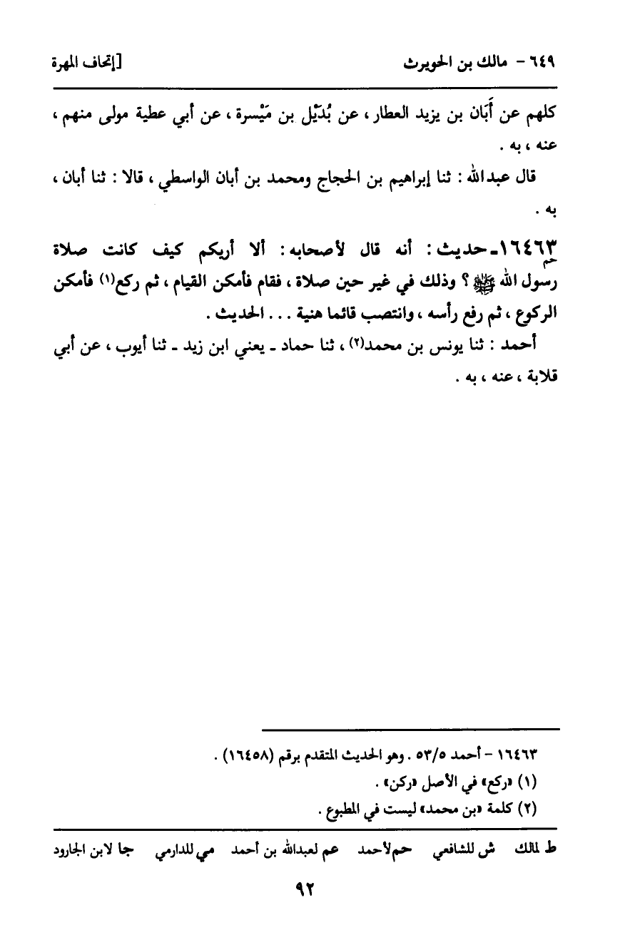 16463 - حديث (حم) : إنه قال لأصحابه: ألا أريكم كيف كانت صلاة رسول الله - صَلَّى اللَّهُ عَلَيْهِ وَسَلَّمَ -؟ وذلك في غير حين صلاة، فقام فأمكن القيام، ثم ركع فأمكن الركوع، ثم رفع رأسه، وانتصب قائما هنية ... الحديث.