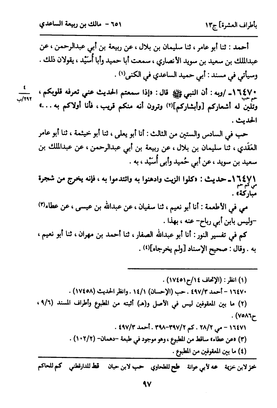 -[98]- رواه أحمد: عن عبد الرحمن ووكيع، كلاهما عن سفيان، عن عبد الله بن عيسى، عن عطاء الشامي - رجل كان يكون بالساحل - عن أبي أسيْد، به. وقال ابن مهدى: عن أبي أُسَيد، أو أبي أَسِيد بن ثابت - شك سفيان - كذا أورده في مسند: أبي أَسِيد، وفيه اختلاف.