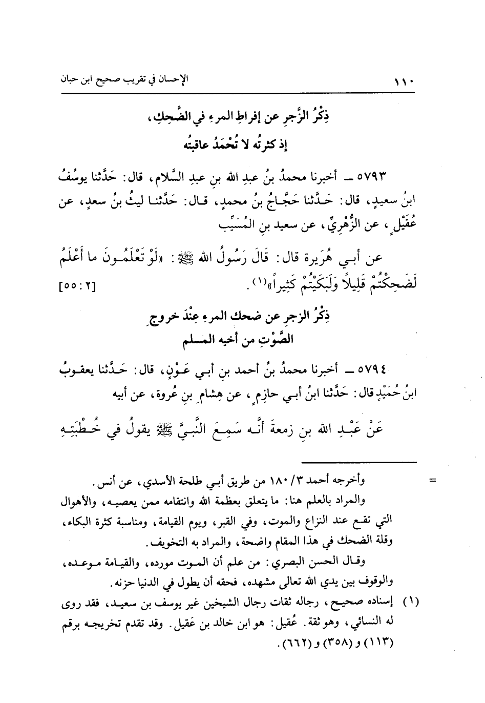 عَنْ أَبِي هُرَيْرَةَ قَالَ: قَالَ رَسُولُ اللَّهِ صَلَّى اللَّهُ عَلَيْهِ وَسَلَّمَ: "لو تعملون ما اعلم لضحكتم قليلا ولبكيتم كثيرا" 1 [55:2]