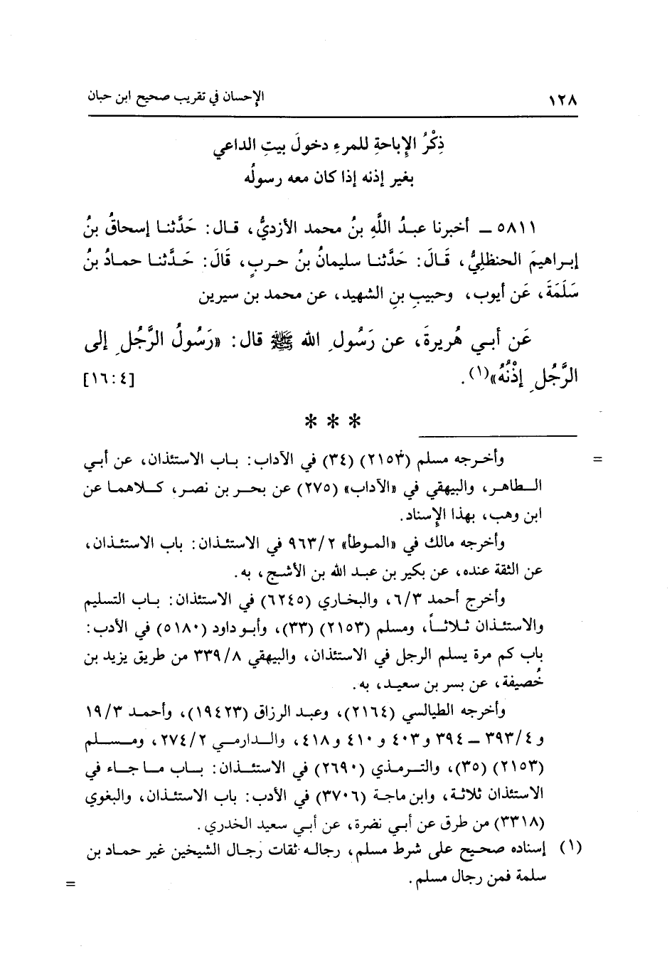 عَنْ أَبِي هُرَيْرَةَ، عَنْ رَسُولِ اللَّهِ صَلَّى اللَّهُ عَلَيْهِ وَسَلَّمَ قَالَ: "رَسُولُ الرَّجُلِ الى الرجل اذنه" 1 [16:4]