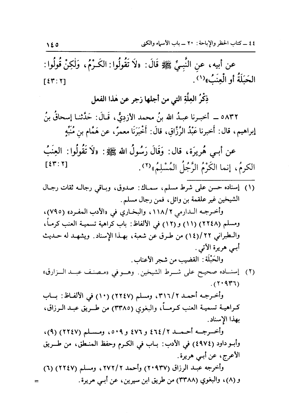 وأخرجه أحمد 2/316، ومسلم "2247" "10" في الألفاظ: باب كراهية تسمية العنب كرماً، والبغوي "3385" من طريق عبد الرزاق، بهذا الإسناد.