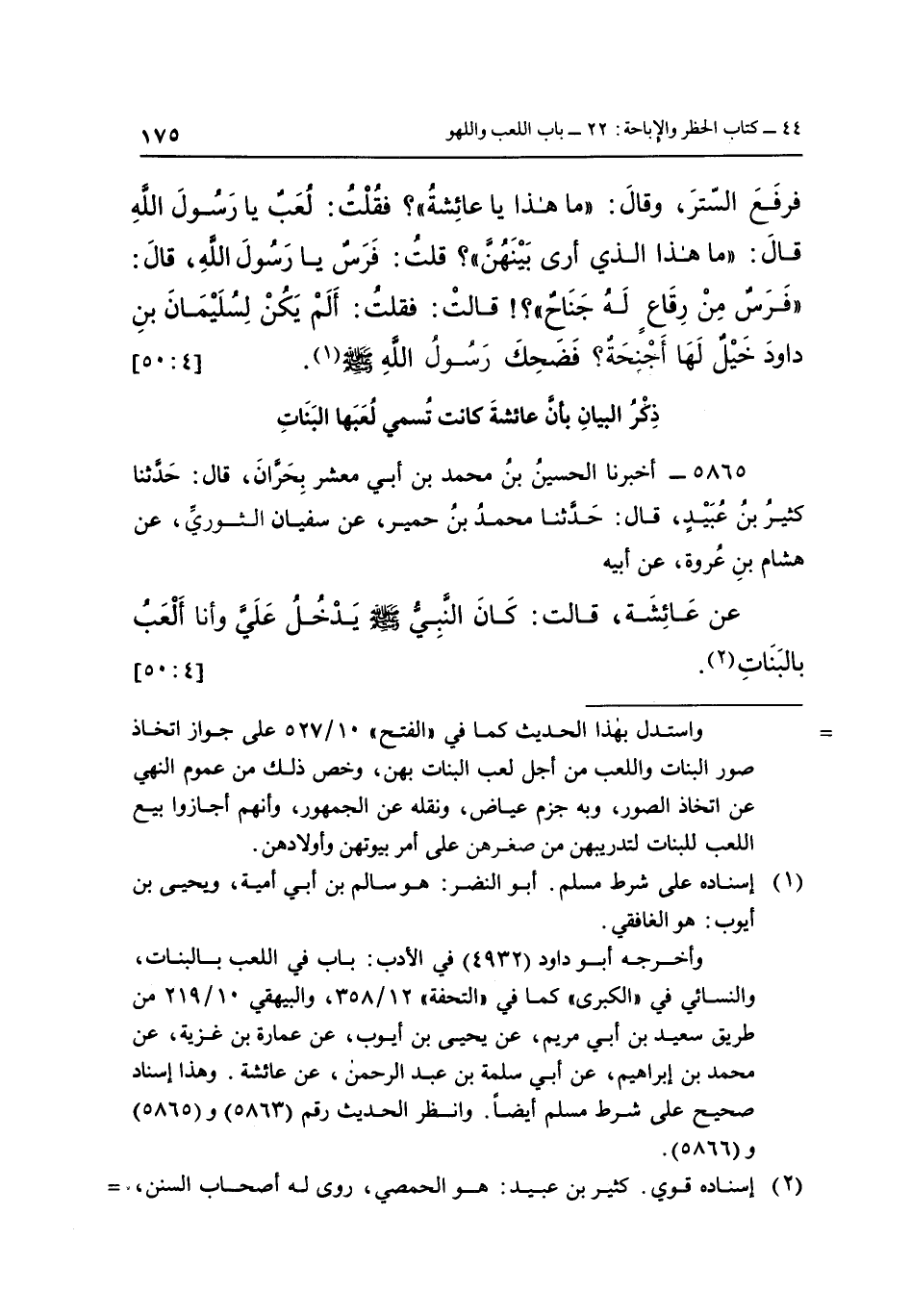 عَنْ عَائِشَةَ قَالَتْ: كَانَ النَّبِيُّ صَلَّى اللَّهُ عَلَيْهِ وَسَلَّمَ يَدْخُلُ عَلَيَّ وَأَنَا أَلْعَبُ بِالْبَنَاتِ2 [50:4]