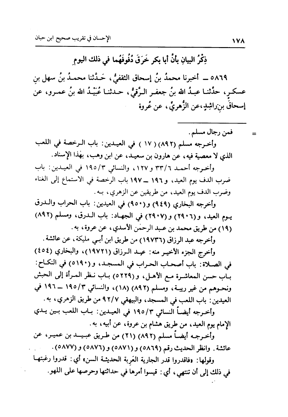 5869 ـ أَخْبَرَنَا مُحَمَّدُ بْنُ إِسْحَاقَ الثَّقَفِيُّ، حَدَّثَنَا مُحَمَّدُ بْنُ سَهْلِ بْنِ عَسْكَرٍ، حَدَّثَنَا عَبْدُ اللَّهِ بْنُ جَعْفَرٍ الرَّقِّيُّ، حَدَّثَنَا عُبَيْدُ اللَّهِ بْنُ عَمْرٍو، عَنْ إِسْحَاقَ بْنِ راشد، عن الزهرى، عن عروة