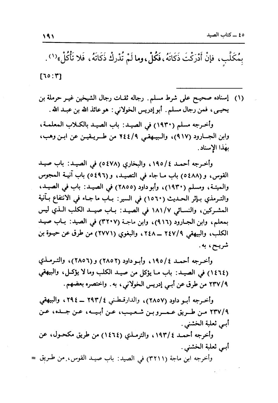 بِمُكَلَّبٍ فَإِنْ أَدْرَكْتَ ذَكَاتَهُ فَكُلْ وَمَا لَمْ تدرك ذكاته فلا تأكل" 1 [65:3]
