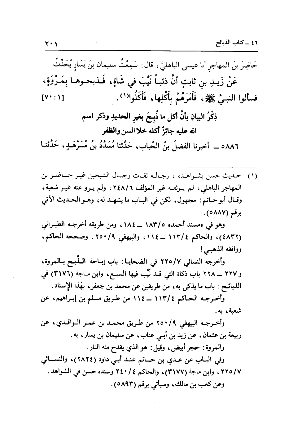 5886 ـ أَخْبَرَنَا الْفَضْلُ بْنُ الْحُبَابِ، حَدَّثَنَا مُسَدَّدُ بْنُ مُسَرْهَدٍ، حَدَّثَنَا