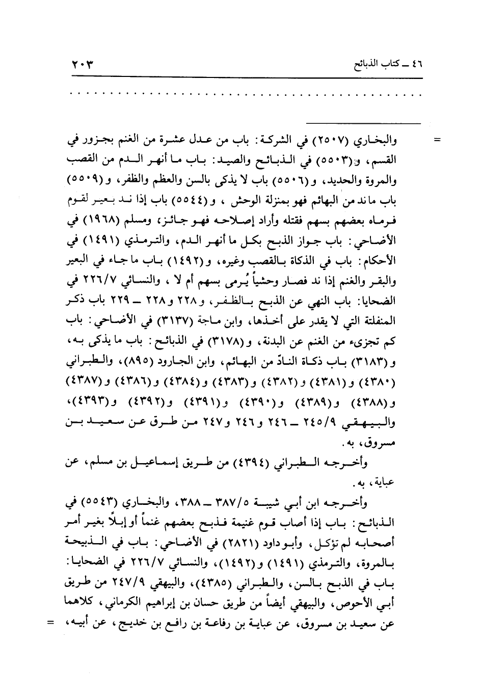 =والبخاري "2507" في الشركة: باب من عدل عشرة من الغنم بجزور في القسم، و"5503" في الذبائح والصيد" باب ما أنهر الدم من القصب والمروة والحديد، و"5506" باب لا يذكي بالسن والعظم والظفر، و"5509" باب ما ند من البهائم فهو بمنزلة الوحش، "5544" باب إذا ند بعير لقوم فرماه بعضهم بسهم فقتله وأراد إصلاحه فهو جائز، ومسلم "1968" في الأضاحي: باب في الذكاة بالقصب وغيره، "1492"، باب ما جاء في البعير والغنم إذا ند فصار وحشياً يرمي بسهم أم لا، والنسائي 7/226 في الضحايا: باب النهي عن الذبح بالظفر، و228 ـ 228 ـ 229 باب ذكر المنفلتة التي لا يقدر على أخدها، وابن ماجة "3137" في الأضاحي: باب كم تجزئ من الغنم عن البدنة، و"3178" في الذبائح باب ما يذكى به، و"4383" با ب ذكاة النَّاد من البهائم، وابن الجارود "895"، والطبراني "3180"و"4381"و"4382"و"4383"و"4384"و"4386"و"4387" و"4388" و"4389" و"4391" و"4392" و"4393"، والبيهقي 9/245 ـ 246و247 من طرق عن سعيد بن مسروق، به. وأخرجه الطبراني "4394" من طريق إسماعيل بن مسلم، عن عباية، به.