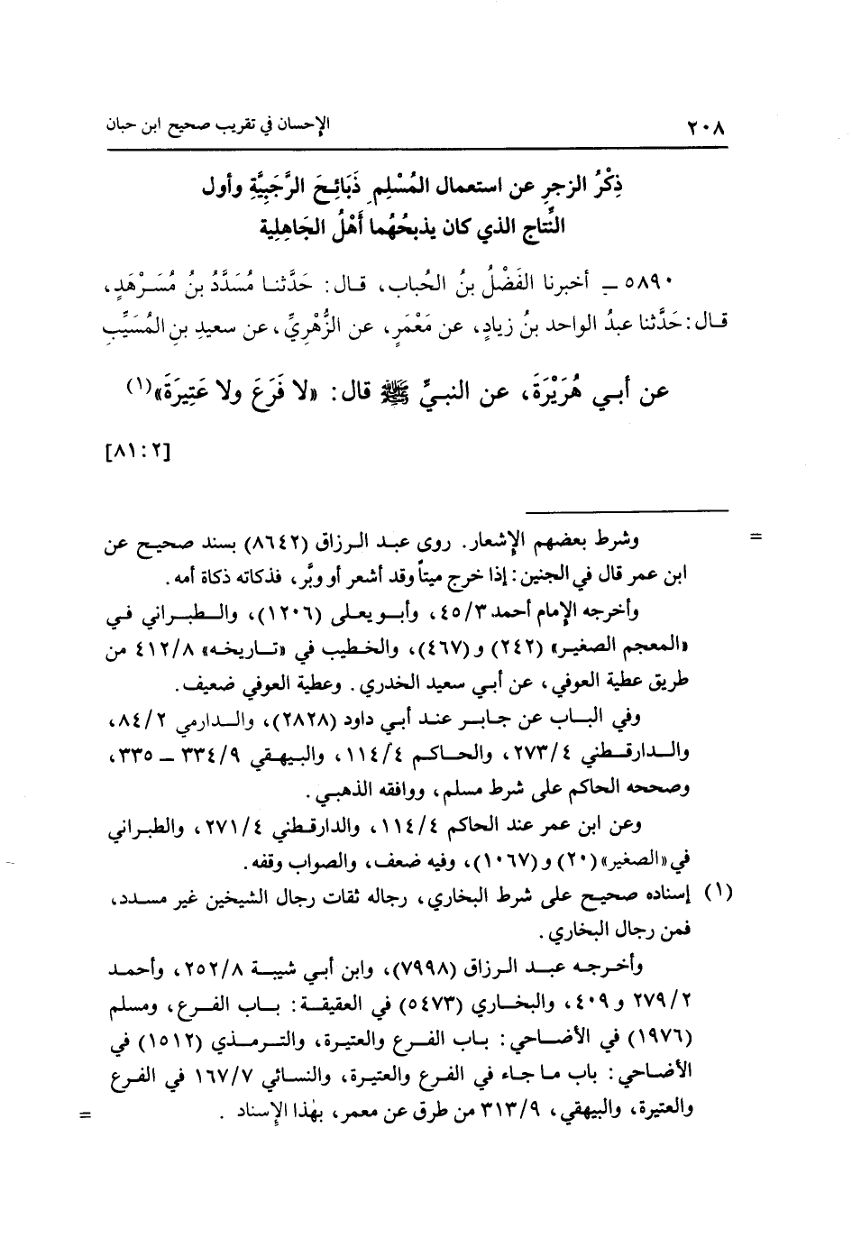 ذِكْرُ الزَّجْرِ عَنِ اسْتِعْمَالِ الْمُسْلِمِ ذَبَائِحَ الرَّجَبِيَّةِ وَأَوَّلَ النِّتَاجِ الَّذِي كَانَ يَذْبَحُهُمَا أَهْلُ الْجَاهِلِيَّةِ