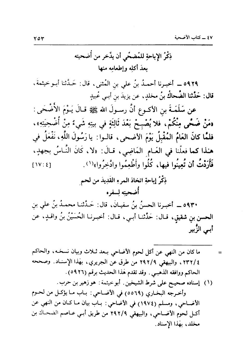 5929 ـ أَخْبَرَنَا أَحْمَدُ بْنُ عَلِيِّ بْنِ الْمُثَنَّى، قَالَ: حَدَّثَنَا أَبُو خَيْثَمَةَ، قَالَ: حَدَّثَنَا الضَّحَّاكُ بْنُ مَخْلَدٍ، عَنْ يَزِيدَ بْنِ أَبِي عُبَيْدٍ