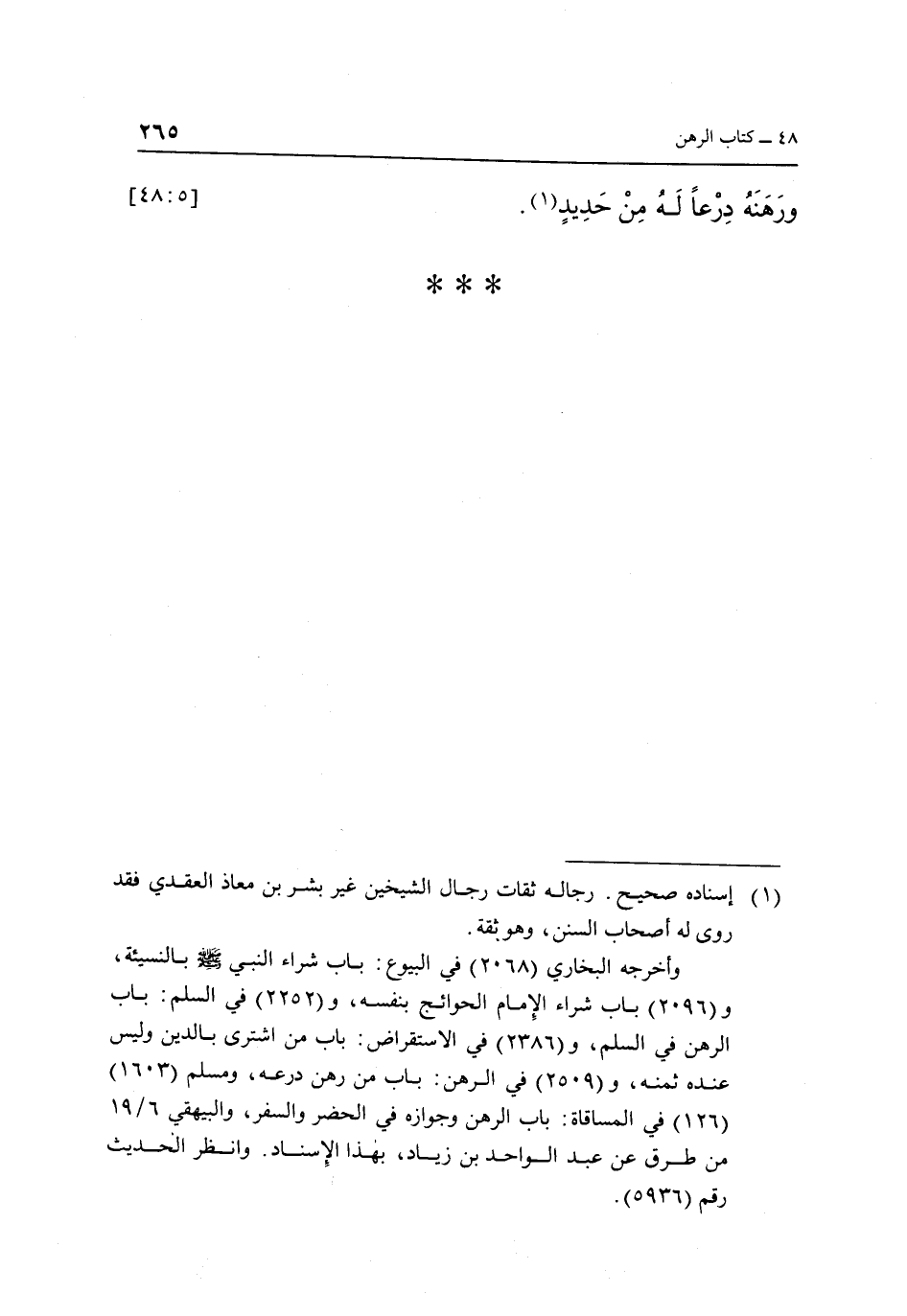 وأخرجه البخاري "2068" في البيوع: باب شراء النبي صلى الله عليه وسلم بالنسيئة، و"2096" باب شراء الإمام الحوائج بنفسه، و"2252" في السلم: باب الرهن في السلم، و"2386" في الإستقراض: باب من اشترى بالدين وليس عنده ثمنه، و"2509" في الرهن: باب من رهن درعه، ومسلم "1603" "126" في المساقاة: باب الرهن وجوازه في الحضر والسفر، والبيهقي 6/19 من طرق عن عبد الواحد بن زياد، بهذا الإسناد. وانظر الحديث رقم "5936".