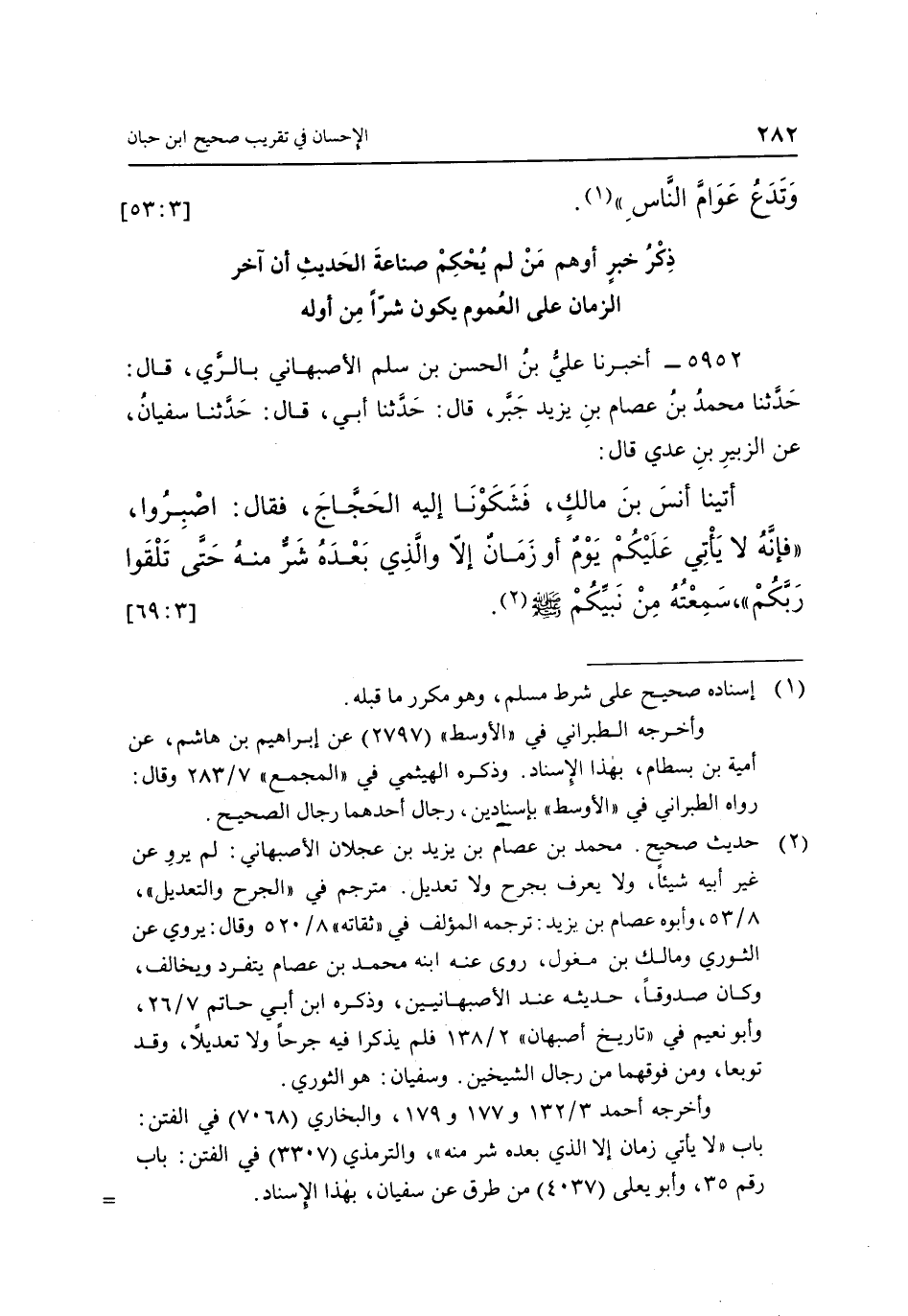 ذِكْرُ خَبَرٍ أَوْهَمَ مَنْ لَمْ يُحْكِمْ صِنَاعَةَ الحديث ان آخر الزمان علىالعموم يَكُونُ شَرًّا مِنْ أَوَّلِهِ