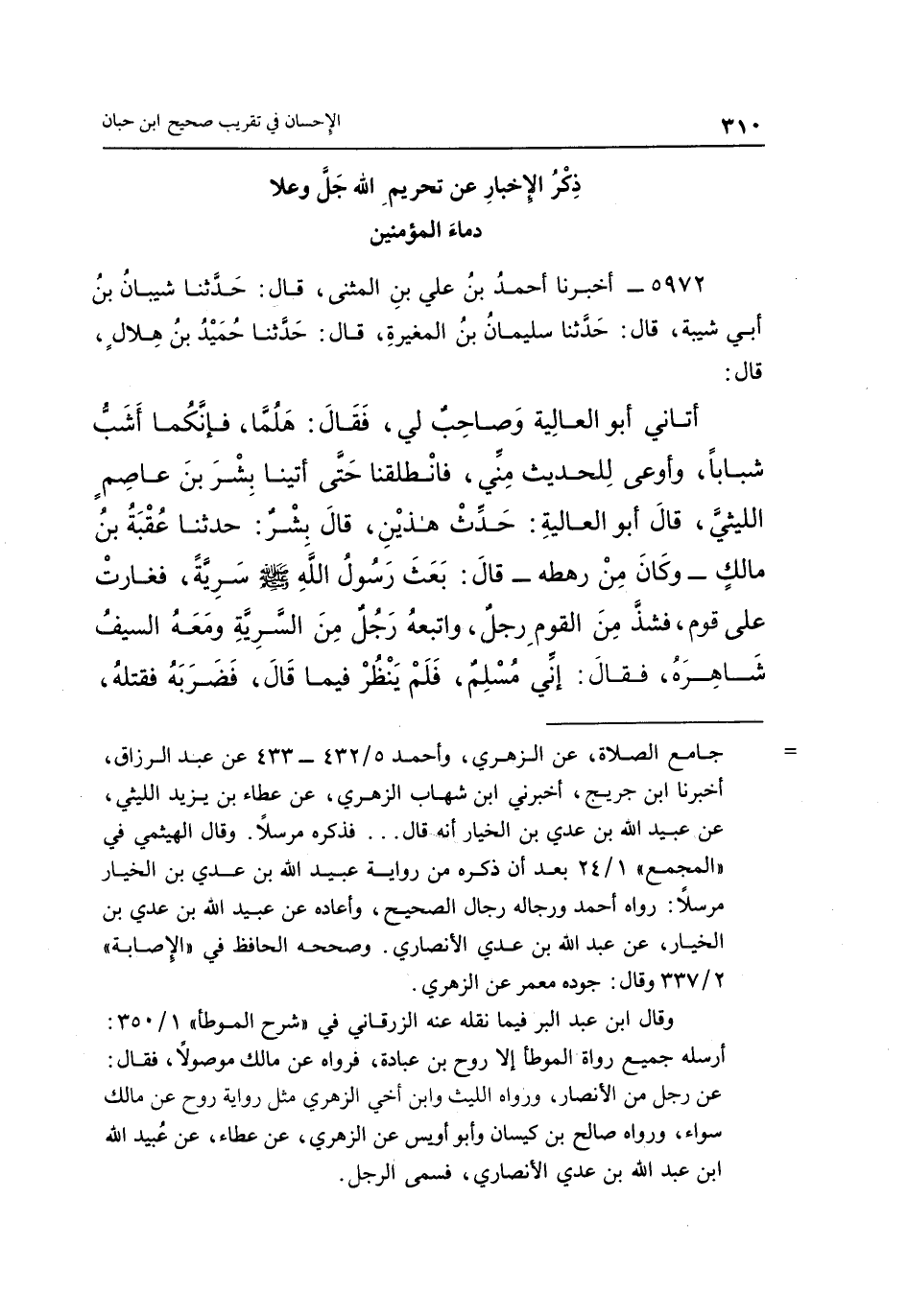 ذِكْرُ الْإِخْبَارِ عَنْ تَحْرِيمِ اللَّهِ جَلَّ وَعَلَا دِمَاءَ الْمُؤْمِنِينَ