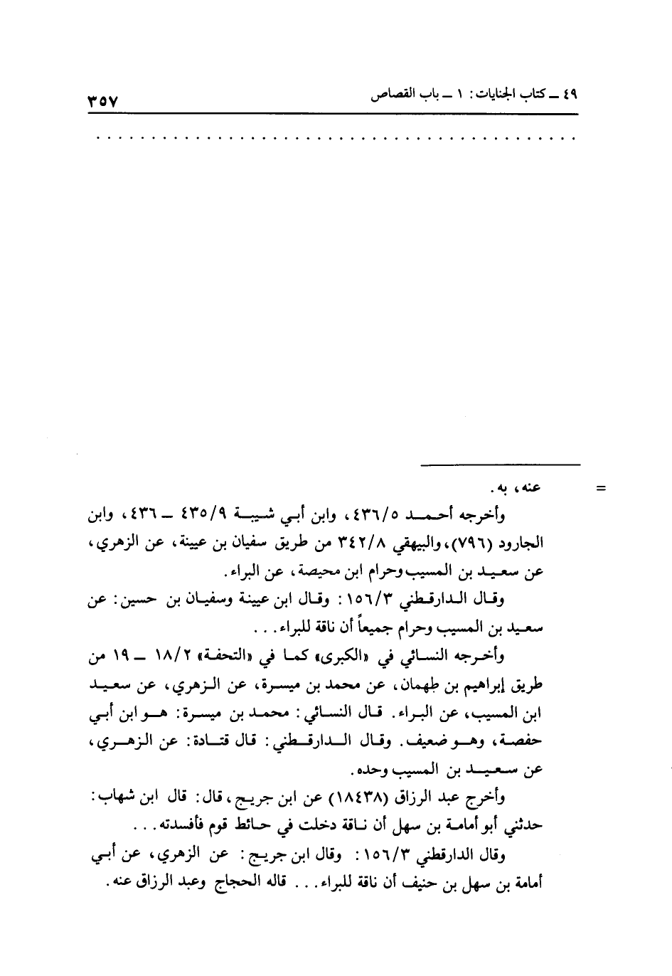 وأخرجه أحمد 5/436، وابن أبي شيبة 9/435 – 436، وابن الجارود "796"، والبيهقي 8/342 من طريق سفيان بن سعيد حسين: عن سعيد بن المسيب وحرام جميعاً أن ناقة للبراء ...