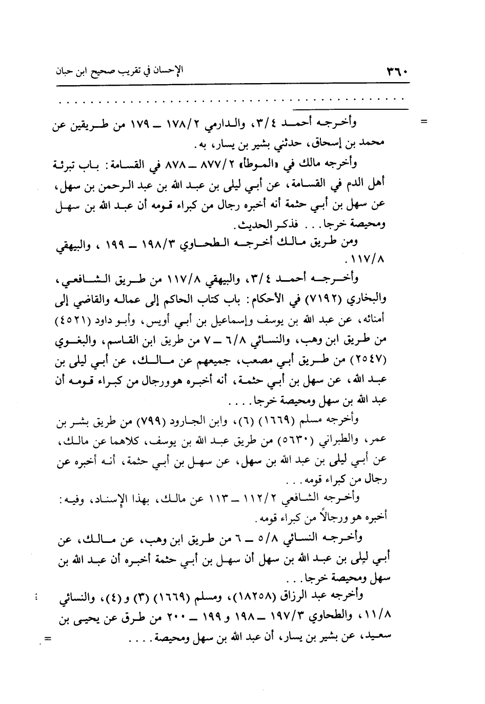 وأخرجه النسائي 8/5 – 6 من طريق ابن وهب، عن مالك، عن أبي ليلى بن عبد الله بن سهل أن سهل بن أبي حثمة أخبره أن عبد الله بن سهل ومحيصة خرجا ...