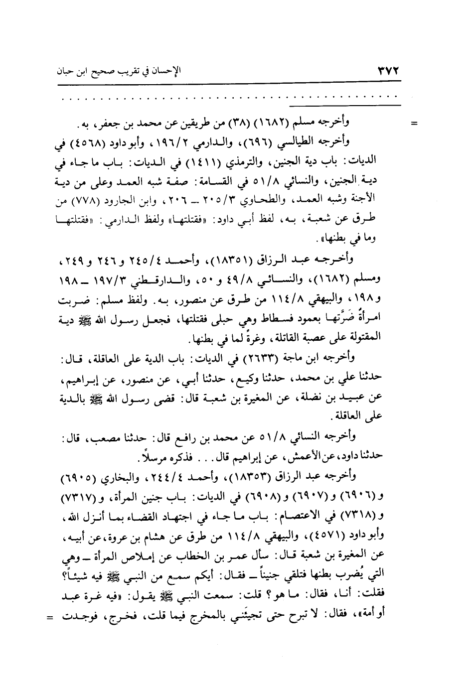 وأخرجه الطيالسي "696"، والدارمي 2/196، وأبو داود "4568" في الديات: باب دية الجنين، النسائي 8/51 في القسامة: صفة شبه العمد وعلى من دية الأجنة وشبه العمد، والطحاوي 3/205 – 206، وابن الجارود "778" من طرق عن شعبة، به, لفظ أبي داود: "فقتلها" ولفظ الدارمي: "فقتلها وما في بطنها".