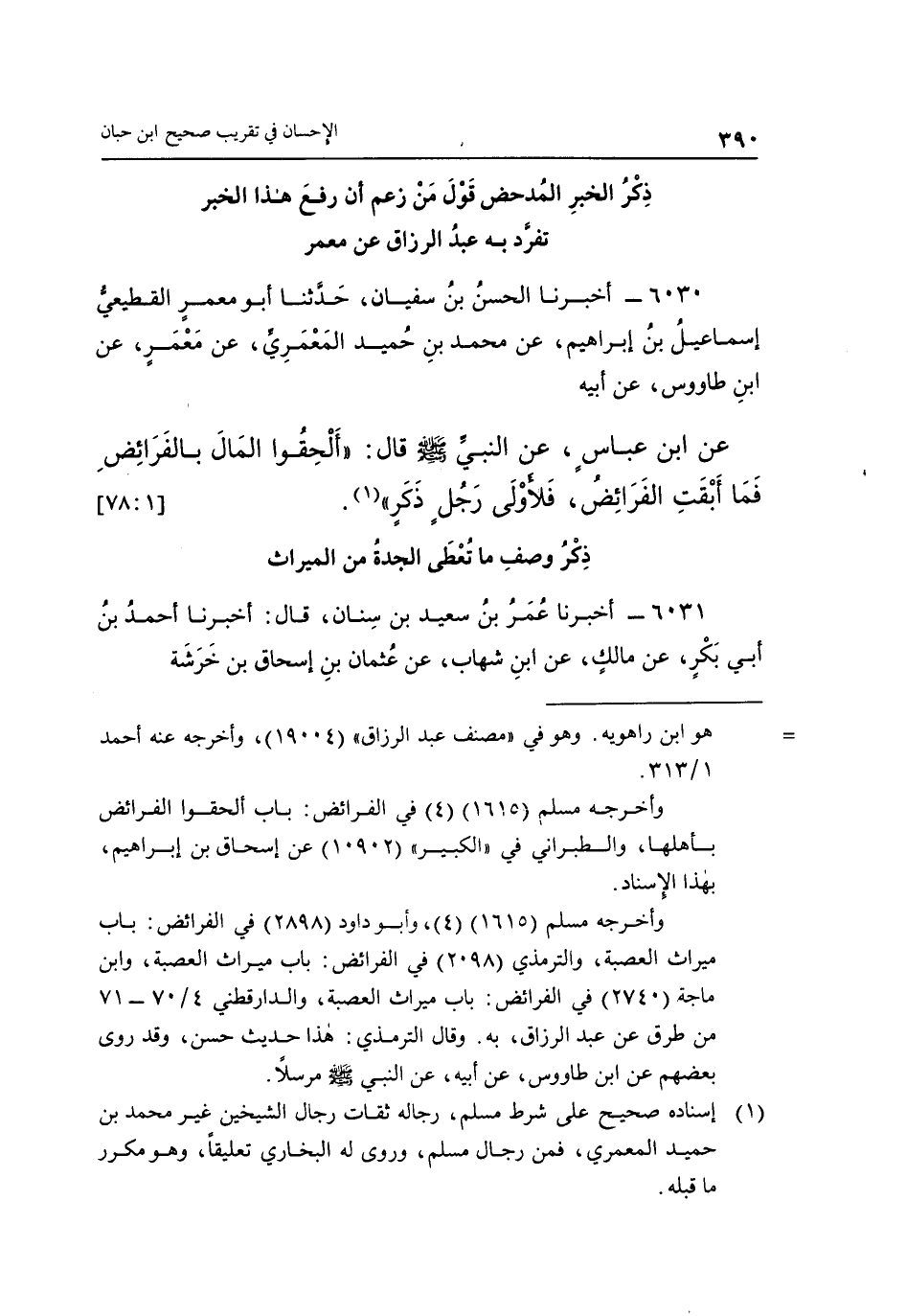 6030 ـ أَخْبَرَنَا الْحَسَنُ بْنُ سُفْيَانَ، حَدَّثَنَا أَبُو مَعْمَرٍ الْقُطَيْعِيُّ إِسْمَاعِيلُ بْنُ إِبْرَاهِيمَ، عَنْ مُحَمَّدِ بْنِ حُمَيْدٍ الْمَعْمَرِيِّ، عَنْ مَعْمَرٍ، عَنِ بن طاوس، عن أبيه