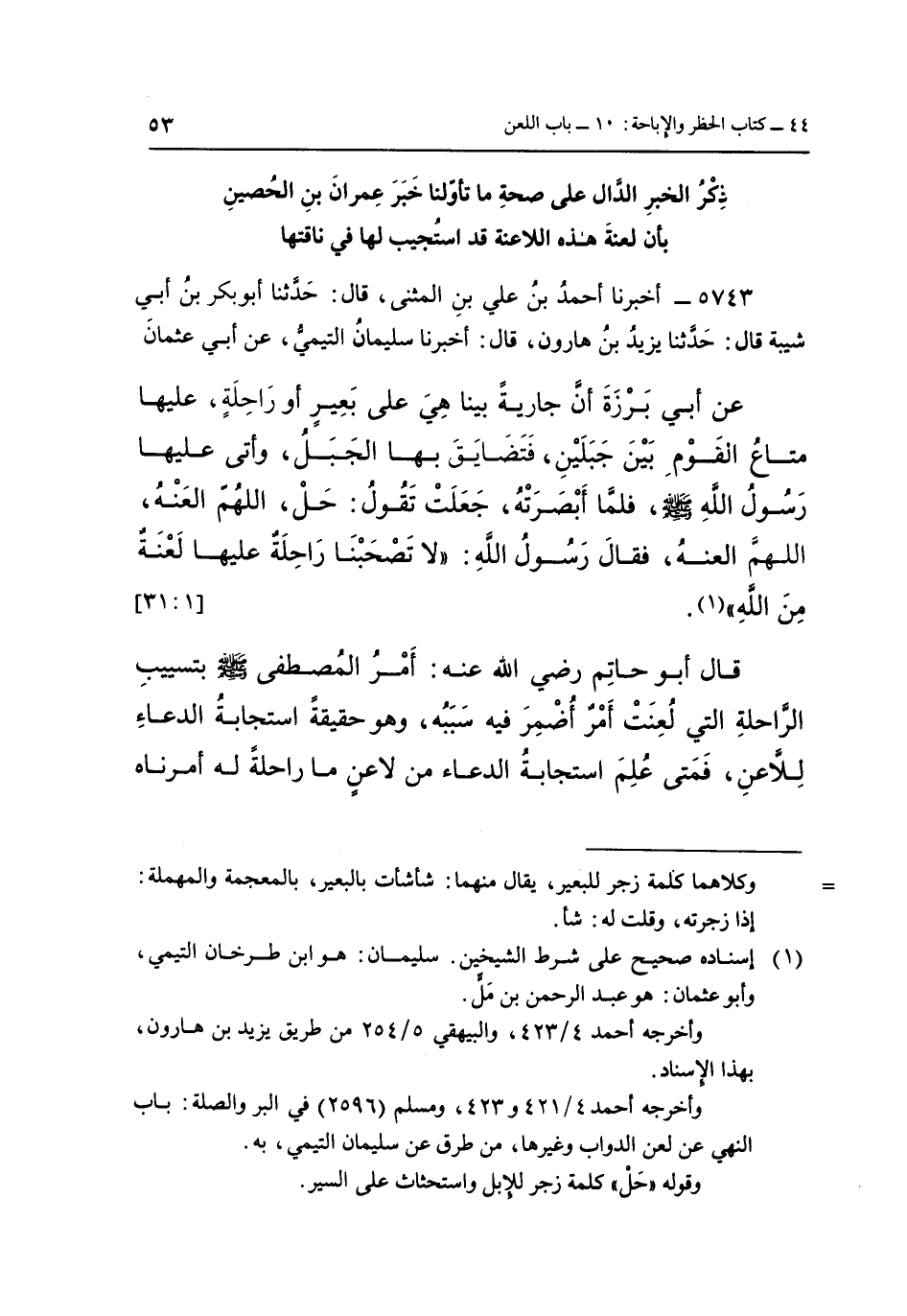 وأخرجه أحمد 4/421و423، ومسلم "2596" في البر والصلة: باب النهي عن لعن الدواب وغيرها, من طرق عن سليمان التيمي، به.
