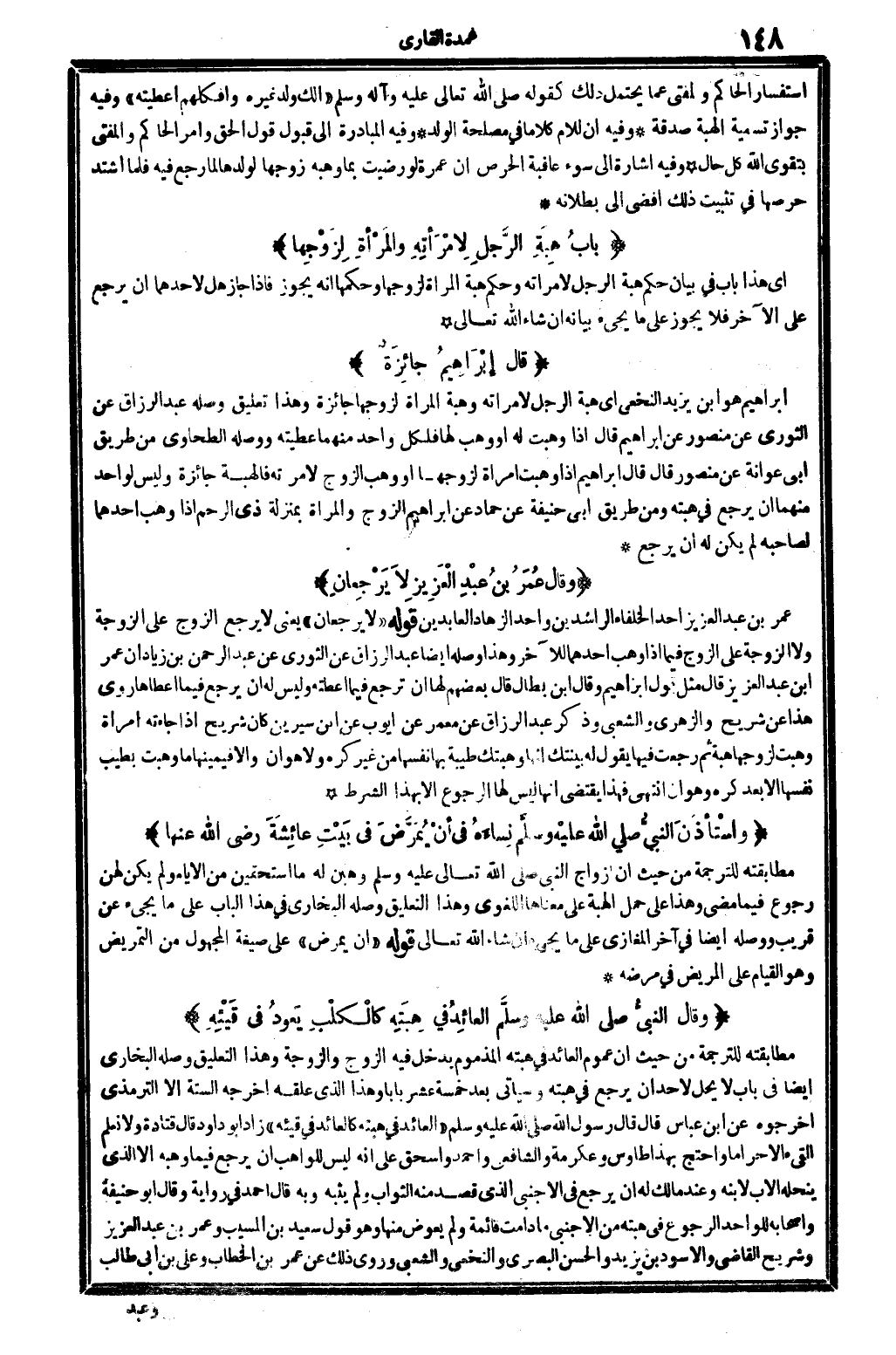 41 - (بابُ هِبَةِ الرَّجُلِ لامْرَأتِهِ والمَرْأةِ لِزَوْجِها)