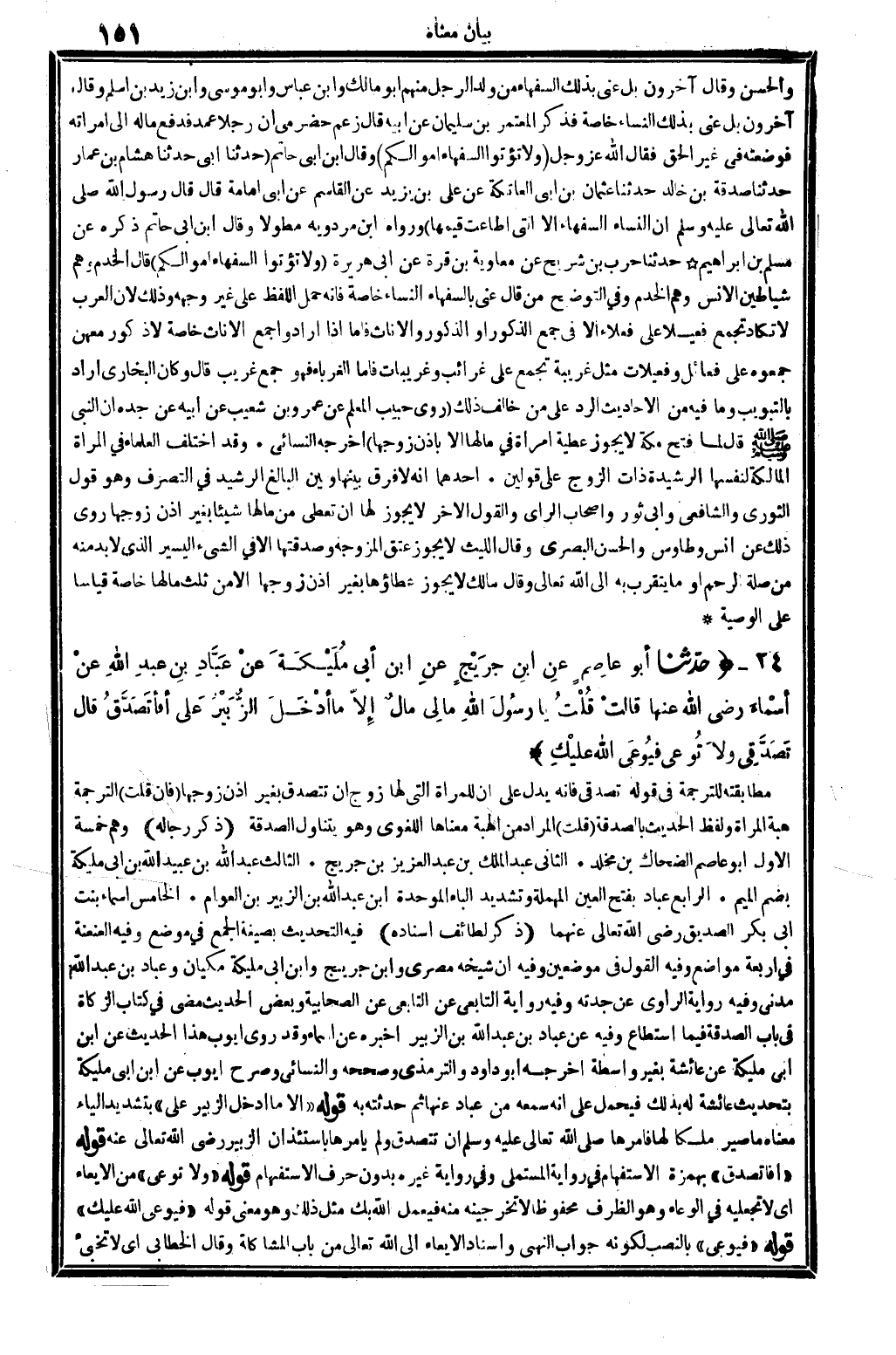 0952 - حدَّثنا أَبُو عاصِمٍ عنِ ابنِ جرَيْجٍ عنِ ابنِ أبِي مُلَيكَةَ عنْ عَبَّادِ بنِ عَبْدِ الله عنْ أسْماءَ رَضِي الله تَعَالَى عَنْهَا قالَتْ قُلْتُ يَا رَسُولَ الله مالِي مالٌ إلاَّ مَا أدْخَلَ الزُّبَيْرُ عَلي أفأتَصَدَّقُ قَالَ تَصَدَّقِي وَلَا تُوعي فيُوعَى الله علَيْكِ.