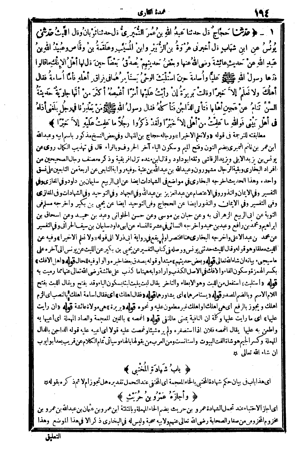 7362 - حدَّثنا حَجَّاجٌ قَالَ حدَّثنا عَبْدُ الله بنُ عُمَرَ النُّمَيْرِيُّ قَالَ حدَّثنا ثَوْبَانُ وَقَالَ اللَّيْثُ حدَّثني يونُسُ عنِ ابنِ شِهَابٍ قَالَ أَخْبرنِي عُرْوَةُ بنُ الزُّبَيْرِ وابنُ المُسَيَّبِ وعَلْقَمَةُ بنُ وقَّاص وعُبَيْدُ الله بنُ عَبْدِ الله عنْ حَدِيثِ عائِشَةَ رَضِي الله تَعَالَى عَنْهَا وبعْضُ حَدِيثِهِمْ يُصدِّقُ بَعْضاً حينَ قَالَ لَها أهل الْإِفْك مَا قَالُوا فدعى رَسُول الله صلى الله عَلَيْهِ وَسلم عليا وَأُسَامَة حِين استليت الْوَحْي يستأمرها فِي فِرَاق أَهله فأمَّا أُسَامَةُ فَقَالَ أهلُكَ وَلَا نَعْلَمُ إلاَّ خَيْراً وقالتْ بَريرَةُ إنْ رأيْتَ علَيْها أمْراً أغْمِصُهُ أكثَرَ مِنْ أنَّها جارِيةٌ حَدِيثَةُ السِّنِّ تَنامُ عنْ عَجِينِ أهْلِهَا فَتأتِي الدَّاجُن فتَأْكُلُهُ فَقَالَ رسولُ الله صلى الله عَلَيْهِ وَسلم مَنْ يَعْذِرُنا فِي رَجُلٍ بَلَغَنِي أذاهُ فِي أهْلِ بَيْتِي فَوالله مَا عَلِمْتُ مِنْ أهْلِي إلاَّ خيْراً ولَقدْ ذَكَرُوا رَجُلاً مَا عَلِمْتُ عَلَيْهِ إلاَّ خَيْراً..