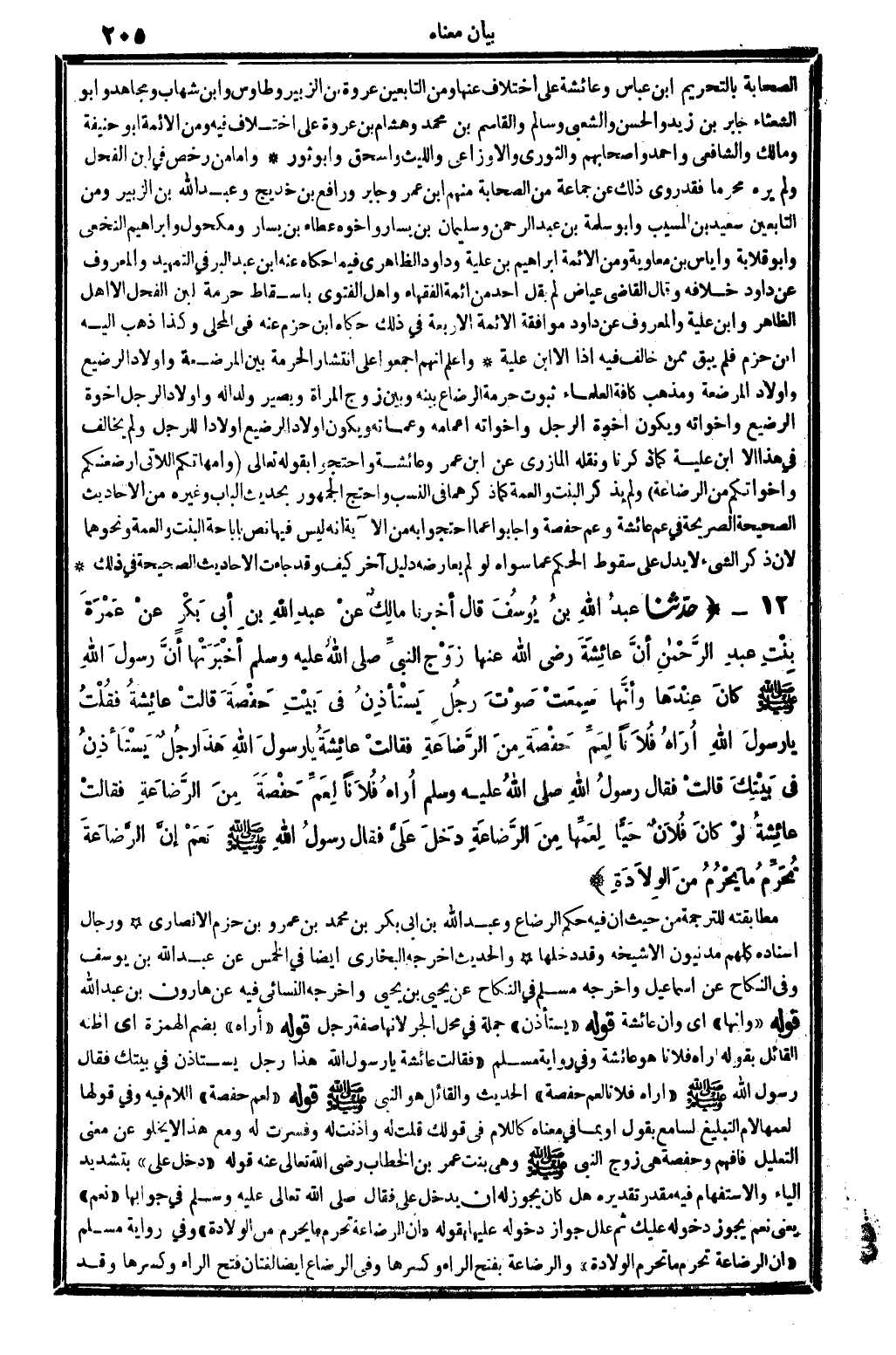 الصَّحَابَة بِالتَّحْرِيمِ: ابْن عَبَّاس وَعَائِشَة على اخْتِلَاف عَنْهَا، وَمن التَّابِعين: عُرْوَة بن الزبير وطاووس وَابْن شهَاب وَمُجاهد وَأَبُو الشعْثَاء جَابر بن زيد وَالْحسن وَالشعْبِيّ وَسَالم وَالقَاسِم بن مُحَمَّد وَهِشَام بن عُرْوَة، على اخْتِلَاف فِيهِ. وَمن الْأَئِمَّة: أَبُو حنيفَة وَمَالك وَالشَّافِعِيّ وَأحمد وأصحابهم وَالثَّوْري وَالْأَوْزَاعِيّ وَاللَّيْث وَإِسْحَاق وَأَبُو ثَوْر. وَأما من رخص فِي لبن الْفَحْل وَلم يره محرما فقد رُوِيَ ذَلِك عَن جمَاعَة من الصَّحَابَة مِنْهُم: ابْن عمر وَجَابِر وَرَافِع بن خديج وَعبد الله بن الزبير، وَمن التَّابِعين: سعيد بن الْمسيب وَأَبُو سَلمَة بن عبد الرَّحْمَن وَسليمَان بن يسَار أَخُوهُ عَطاء بن يسَار وَمَكْحُول وَإِبْرَاهِيم النَّخعِيّ وَأَبُو قلَابَة وَإيَاس بن مُعَاوِيَة، وَمن الْأَئِمَّة: إِبْرَاهِيم بن علية وَدَاوُد الظَّاهِرِيّ فِيمَا حَكَاهُ عَنهُ ابْن عبد الْبر فِي (التَّمْهِيد) . وَالْمَعْرُوف عَن دَاوُد خِلَافه، وَقَالَ القَاضِي عِيَاض: لم يقل أحد من أَئِمَّة الْفُقَهَاء وَأهل الْفَتْوَى بِإِسْقَاط حُرْمَة لبن الْفَحْل إلاَّ أهل الظَّاهِر، وَابْن علية، وَالْمَعْرُوف عَن دَاوُد مُوَافقَة مواتفقة الْأَئِمَّة الْأَرْبَعَة فِي ذَلِك حَكَاهُ ابْن حزم عَنهُ فِي (الْمحلى) وَكَذَا ذهب إِلَيْهِ ابْن حزم. فَلم يبْق مِمَّن خَالف فِيهِ إِذا إلاَّ ابْن علية.