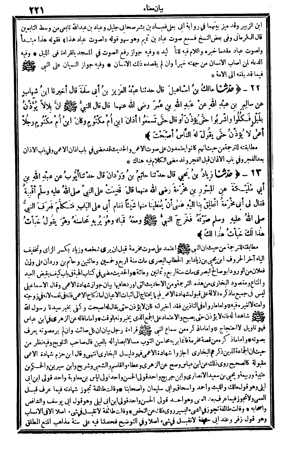 وَأما مَا رَوَاهُ فِي التأذين فقد أخبر أَنه كَانَ لَا يُؤذن حَتَّى يُقَال لَهُ: أَصبَحت، وَكفى بِخَبَر سيدنَا رَسُول الله، صلى الله عَلَيْهِ وَسلم شَاهدا لَهُ، فَإِنَّهُ لَا يُؤذن حَتَّى يصبح، والاعتماد على الْجمع الَّذِي يخبرونه بِالْوَقْتِ. وَأما مَا قَالَه عَن الزُّهْرِيّ فِي ابْن عَبَّاس فَهُوَ تَأْوِيل لَا احتجاج. وَأما مَا ذكر من سَماع النَّبِي، صلى الله عَلَيْهِ وَسلم قِرَاءَة رجل بَيَان أَن كل صائت، وَإِن لم ير مصوته، يعرف بِصَوْتِهِ. وَإِمَّا مَا ذكره من قصَّة مخرمَة فَإِنَّمَا يرِيه محَاسِن الثَّوْب مساً لَا إبصاراً لَهُ بِالْعينِ.
