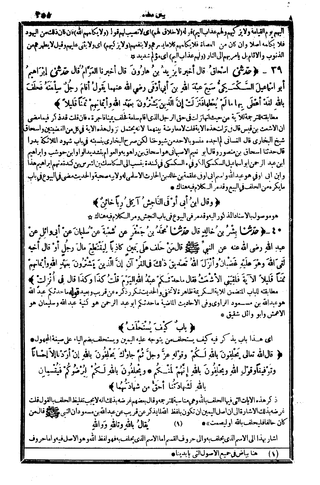 7762 - حدَّثنا بِشْرُ بنُ خالِدٍ قَالَ حدَّثنا مُحَمَّدُ بنُ جَعْفَرٍ عنْ شُعْبَةَ عنْ سُلَيْمانَ عنْ أبِي وَائِلٍ عنْ عبْدِ الله رَضِي الله تَعَالَى عَنهُ عنِ النَّبِيِّ صلى الله عَلَيْهِ وَسلم قَالَ مَنْ حَلَفَ علَى يَمينٍ كاذِباً لِيَقْتَطِعَ مالَ رجُلٍ أوْ قالَ أخِيهِ لَقيَ الله وهْوَ عَلَيْهِ غَضْبانُ وأنْزَلَ الله تَصْدِيقَ ذالِكَ فِي القُرْآنِ {إنَّ الَّذِينَ يَشْتَرُونَ بِعَهْدِ الله وأيْمَانِهِمْ ثَمناً قَلِيلاً} (آل عمرَان: 77) . الْآيَة فلَقِيني الأشْعَثُ فَقَالَ مَا حدَّثكُمْ عَبْدُ الله اليَوْمَ قلْتُ: كَذَا وكذَا قَالَ: فِيَّ أُنْزِلَتْ..