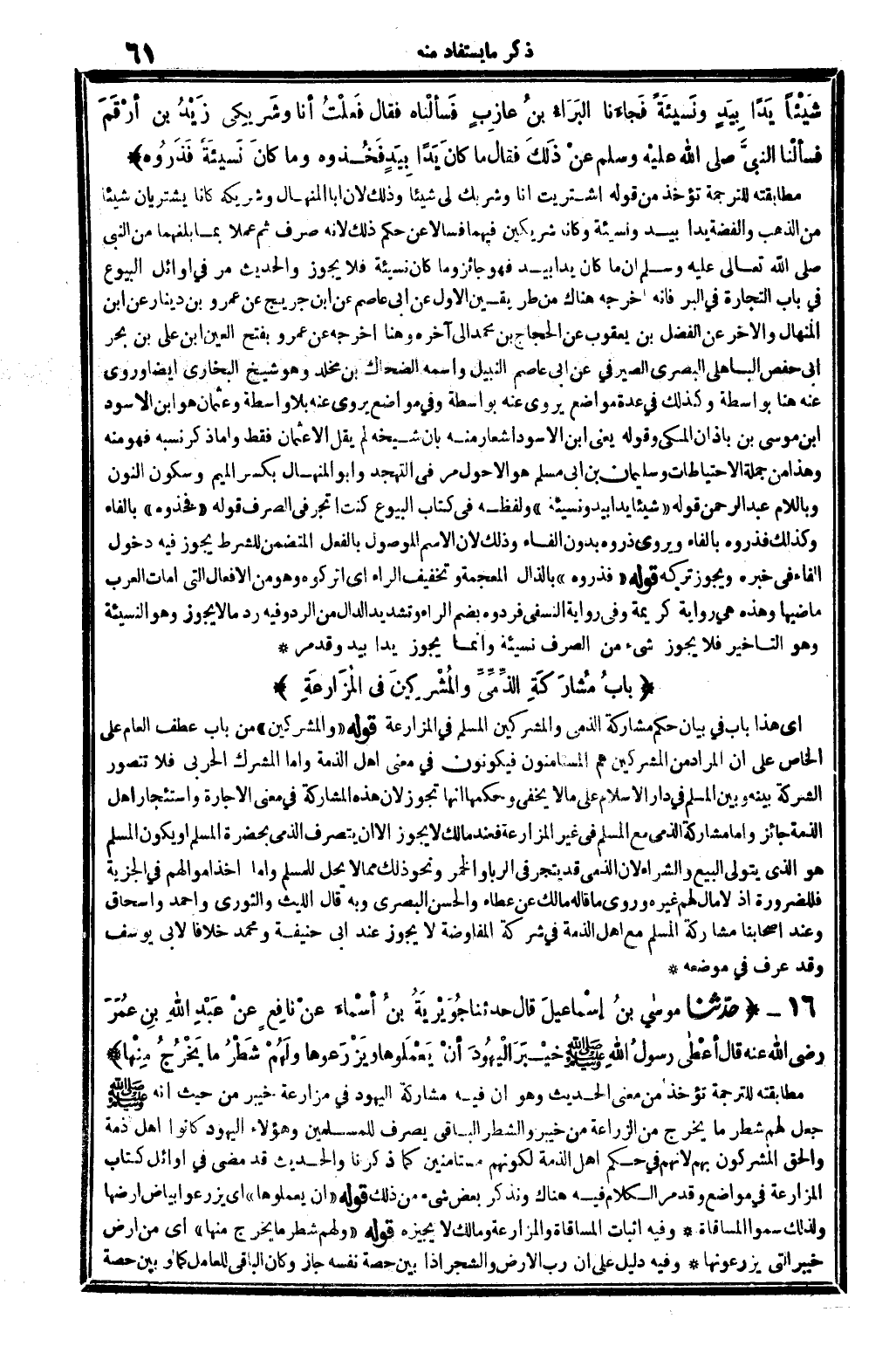 11 - (بابُ مُشَارَكَةِ الذِّمِّيِّ والْمُشْرِكِينَ فِي الْمُزَارَعَةِ)
