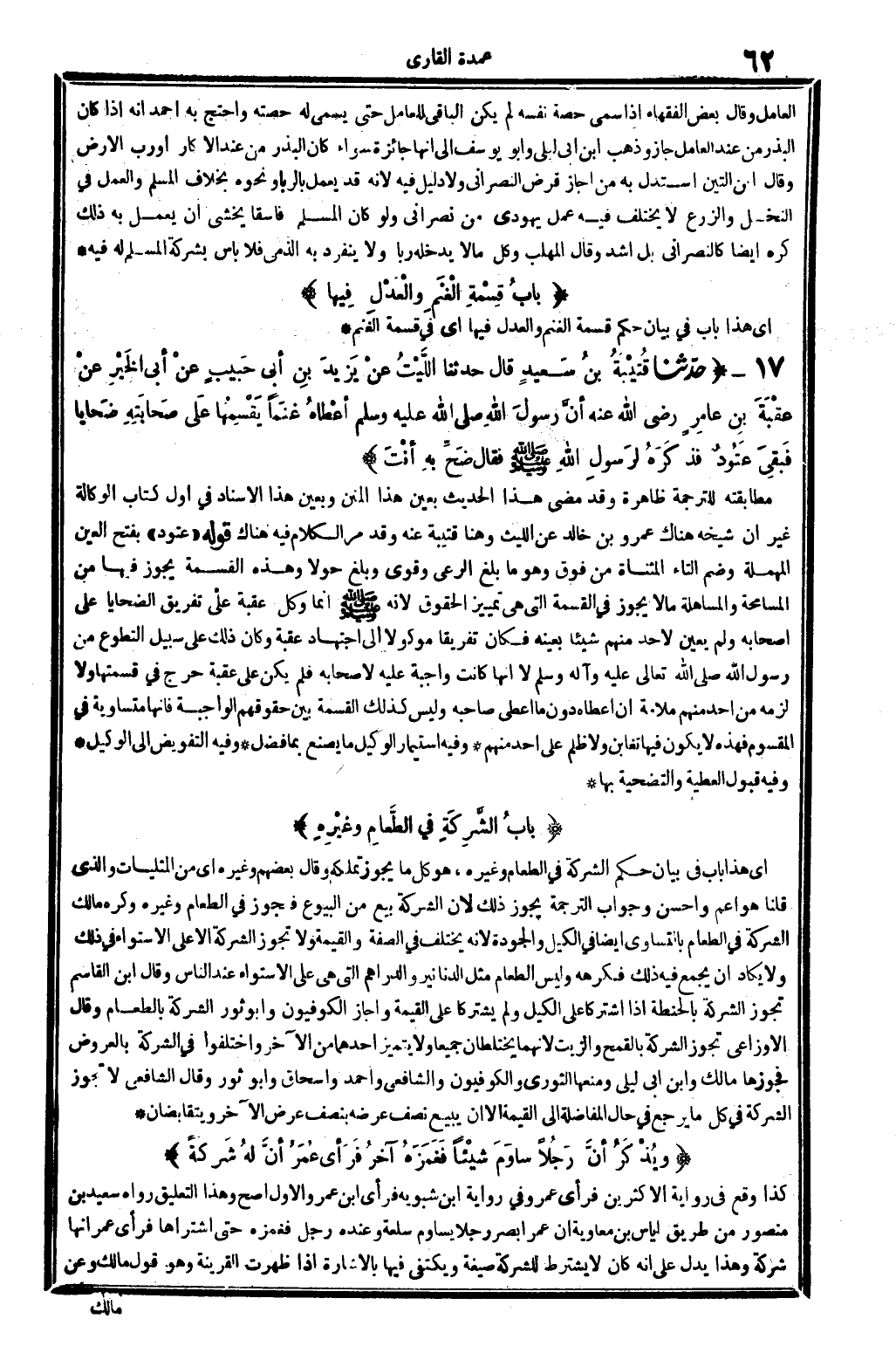 31 - (بابُ الشَّرِكَةِ فِي الطَّعامِ وغَيْرِهِ)