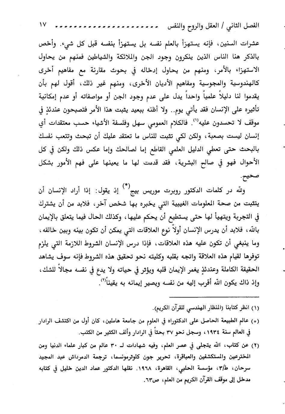 (3) عن كتاب، اللّه يتجلى في عصر العلم، وفيه شهادات ل 30 عالم من كبار علماء الدنيا ومن المخترعين والمستكشفين والعباقرة، تحرير جون كلوثر مونسما، ترجمة الدمرداش عبد المجيد سرحان، ط/ 3، مؤسسة الحلبي، القاهرة، 1968. نقلها الدكتور عماد الدين خليل في كتابه مدخل إلى موقف القرآن الكريم من العلم، ص 63.