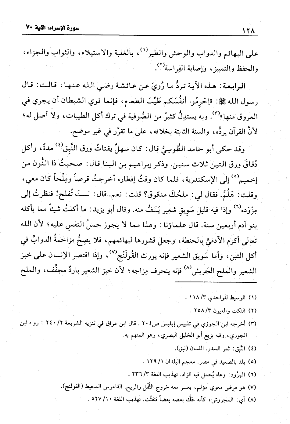 يَصْلُحُ لِذَلِكَ ثُمَّ يُعْطَفُ عَلَيْهَا النَّخْلُ. وَالطَّلْعَةُ هِيَ الَّتِي تَطْلُعُ مِنَ النَّخْلَةِ كَنَصْلِ السَّيْفِ، فِي جَوْفِهِ شَمَارِيخُ الْقِنْوِ، وَالْقِنْوُ اسْمٌ لِلْخَارِجِ مِنَ الْجِذْعِ كَمَا هُوَ بِعُرْجُونِهِ وَشَمَارِيخِهِ. وَ" هَضِيمٌ" قَالَ ابْنُ عَبَّاسٍ: لَطِيفٌ مَا دَامَ فِي كُفُرَّاهُ. وَالْهَضِيمُ اللَّطِيفُ الدَّقِيقُ، وَمِنْهُ قَوْلُ امرئ القيس: