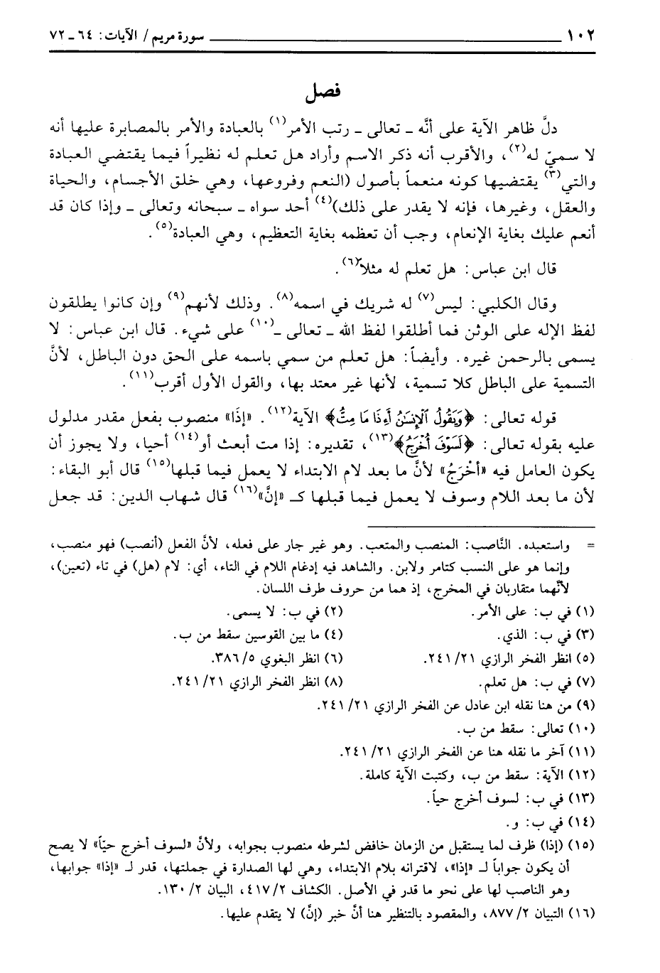 دلَّ ظاهر الآية على أنَّه - تعالى - رتب الأمر بالعبادة والأمر بالمصابرة عليها أنه لا سميّ له، والأقرب أنه ذكر الاسم وأراد هل تعلم له نظيراً فيما يقتضي العبادة والتي يقتضيها كونه منعماً بأصول (النعم وفروعها، وهي خلق الأجسام، والحياة والعقل، وغيرها، فإنه لا يقدر على ذلك) أحد سواه - سبحانه وتعالى - وإذا كان قد أنعم عليك بغاية الإنعام، وجب أن تعظمه بغاية التعظيم، وهي العبادة.