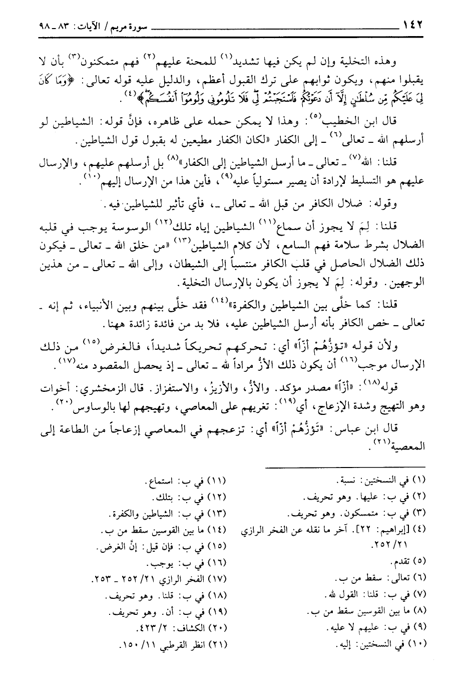 قلنا: كما خلَّى بين الشياطين والكفرة» فقد خلَّى بينهم وبين الأنبياء، ثم إنه - تعالى - خص الكافر بأنه أرسل الشياطين عليه، فلا بد من فائدة زائدة ههنا.
