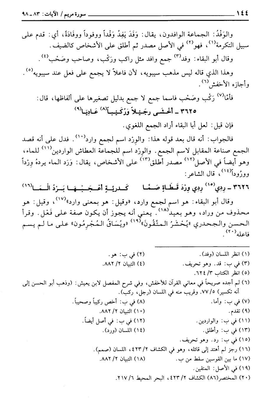 3625 - أخْْشَى رجَيْلاً وَرُكَيْباً عَاديَا ... فإن قيل: لعل أبا البقاء أراد الجمع اللغوي.