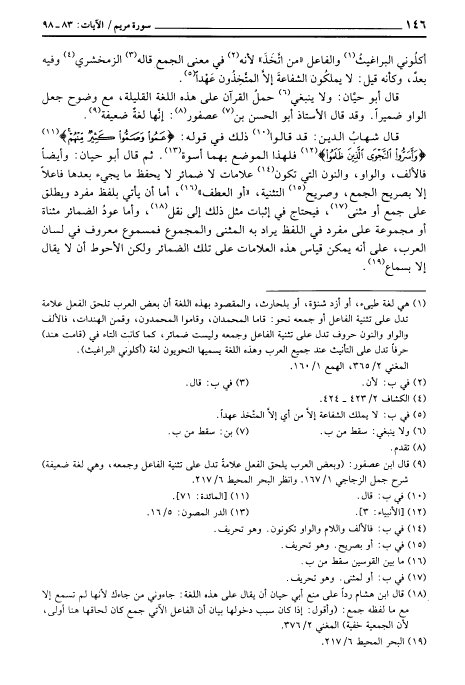 قال أبو حيَّان: ولا ينبغي حملُ القرآن على هذه اللغة القليلة، مع وضوح جعل الواو ضميراً. وقد قال الأستاذ أبو الحسن بن عصفور: إنَّها لغةٌ ضعيفة.