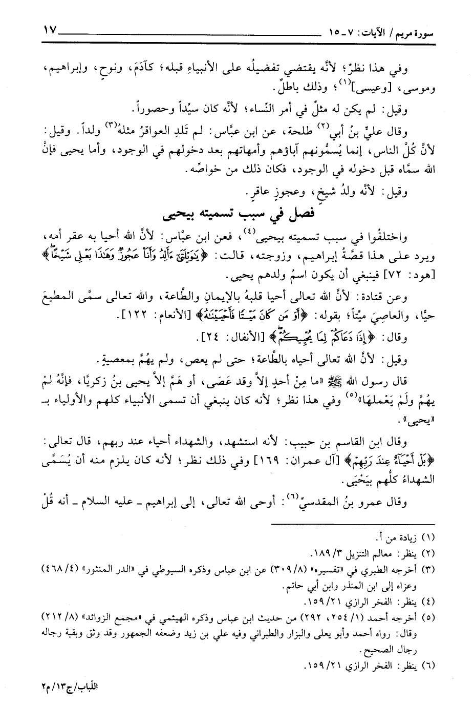 فصل في سبب تسميته بيحيى