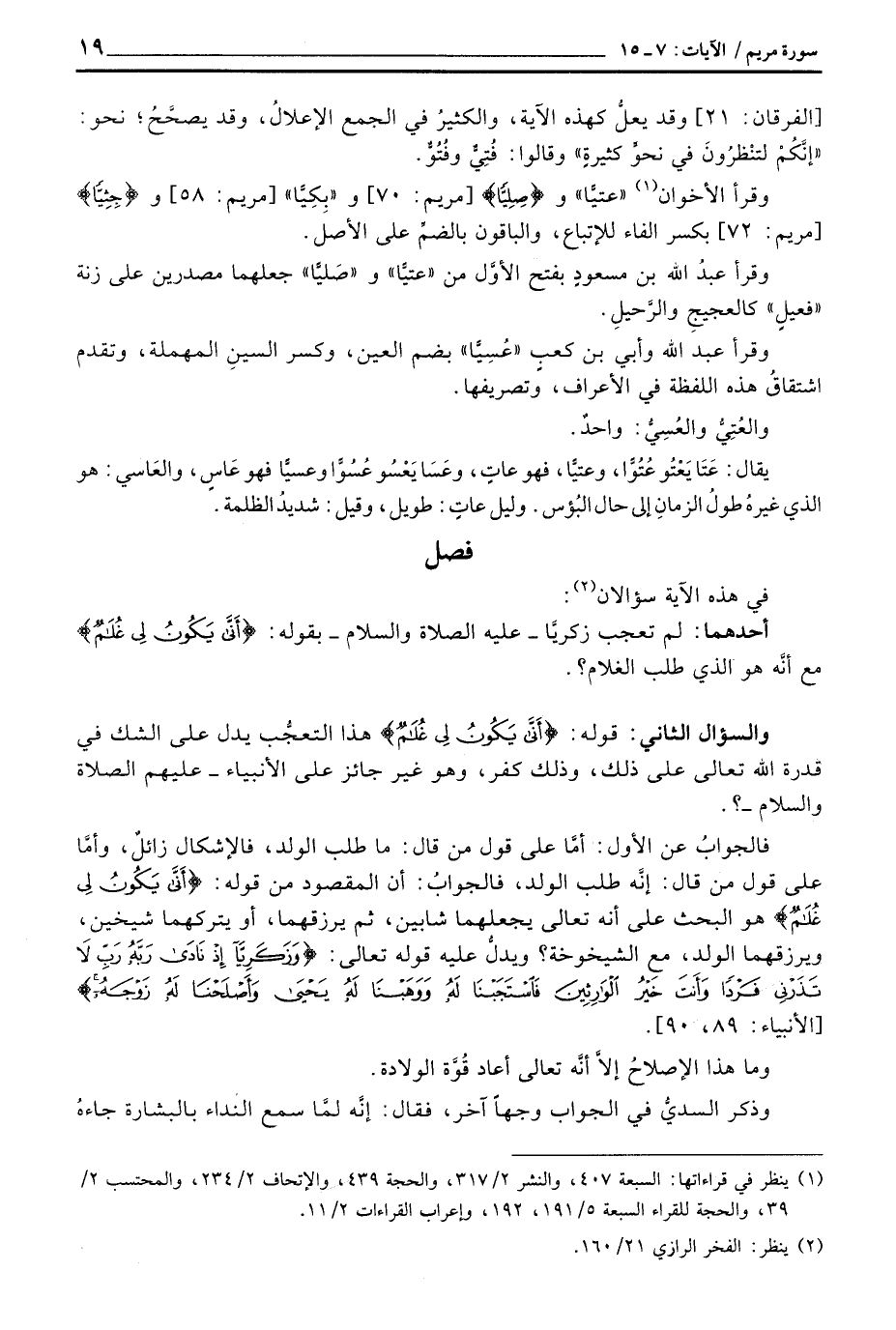 وقرأ الأخوان «عتيًّا» و {صِلِيّاً} [مريم: 70] و «بِكِيّاً» [مريم: 58] و {جِثِيّاً} [مريم: 72] بكسر الفاء للاتباع، والباقون بالضمِّ على الأصلِ.