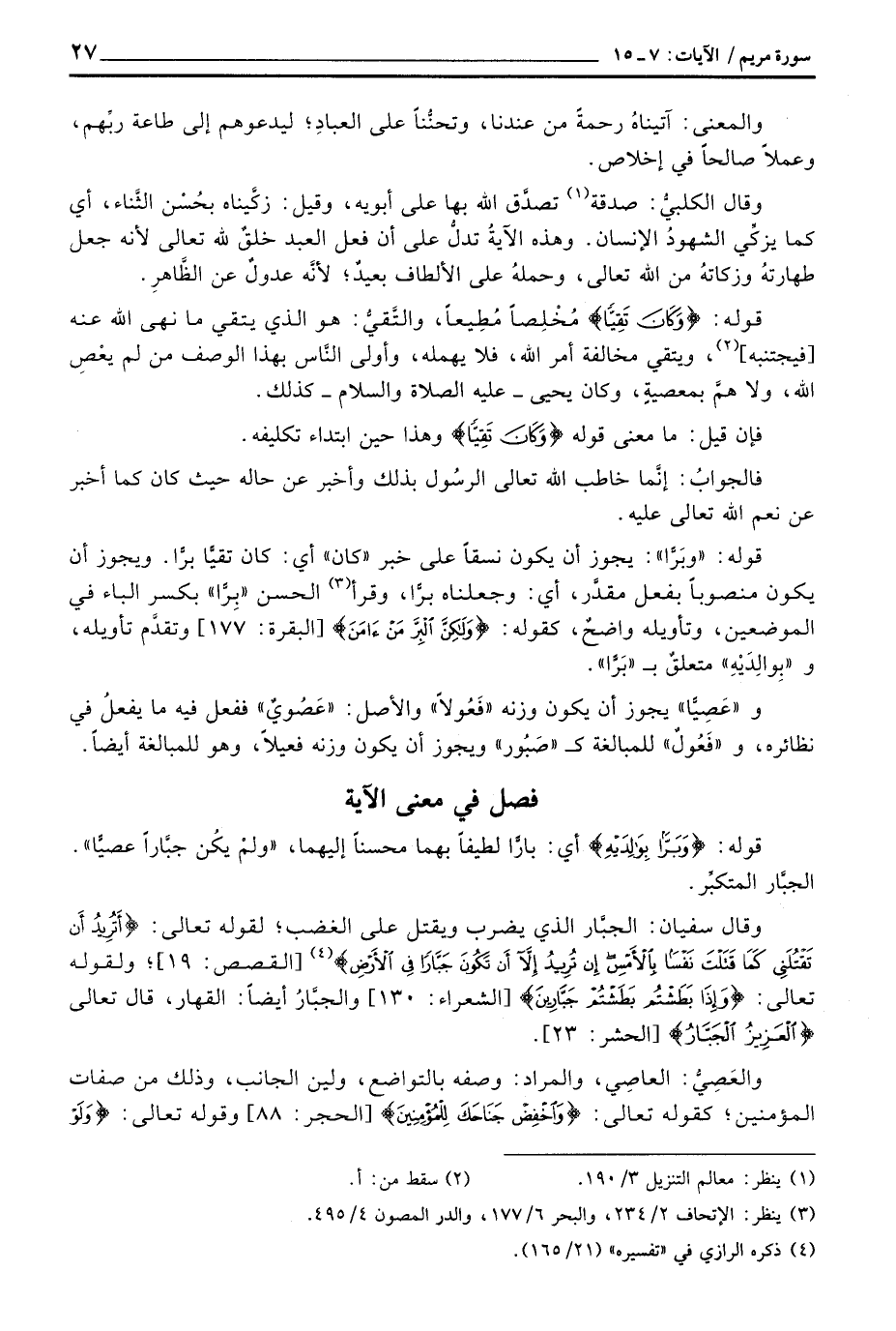 قوله: {وَبَرّاً بِوَالِدَيْهِ} أي: بارًّا لطيفاً بهما محسناً إليهما، «ولمْ يكُن جبَّاراً عصيًّا» .