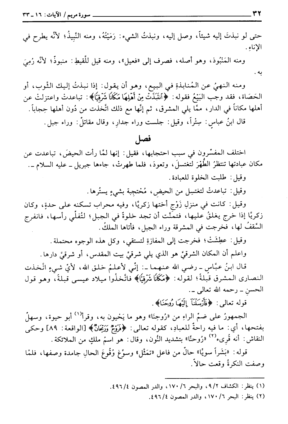 وقيل: كانت في منزلِ زَوْجِ أختها زكريَّا، وفيه محراب تسكنه على حدةٍ، وكان زكريَّا إذا خرج يغلقُ عليها، فتمنَّت أن تجد خلوةً في الجبل؛ لتُفلِّي رأسها، فانفرج السَّقفُ لها، فخرجت في المشرقة وراء الجبل، فأتاها الملكُ.