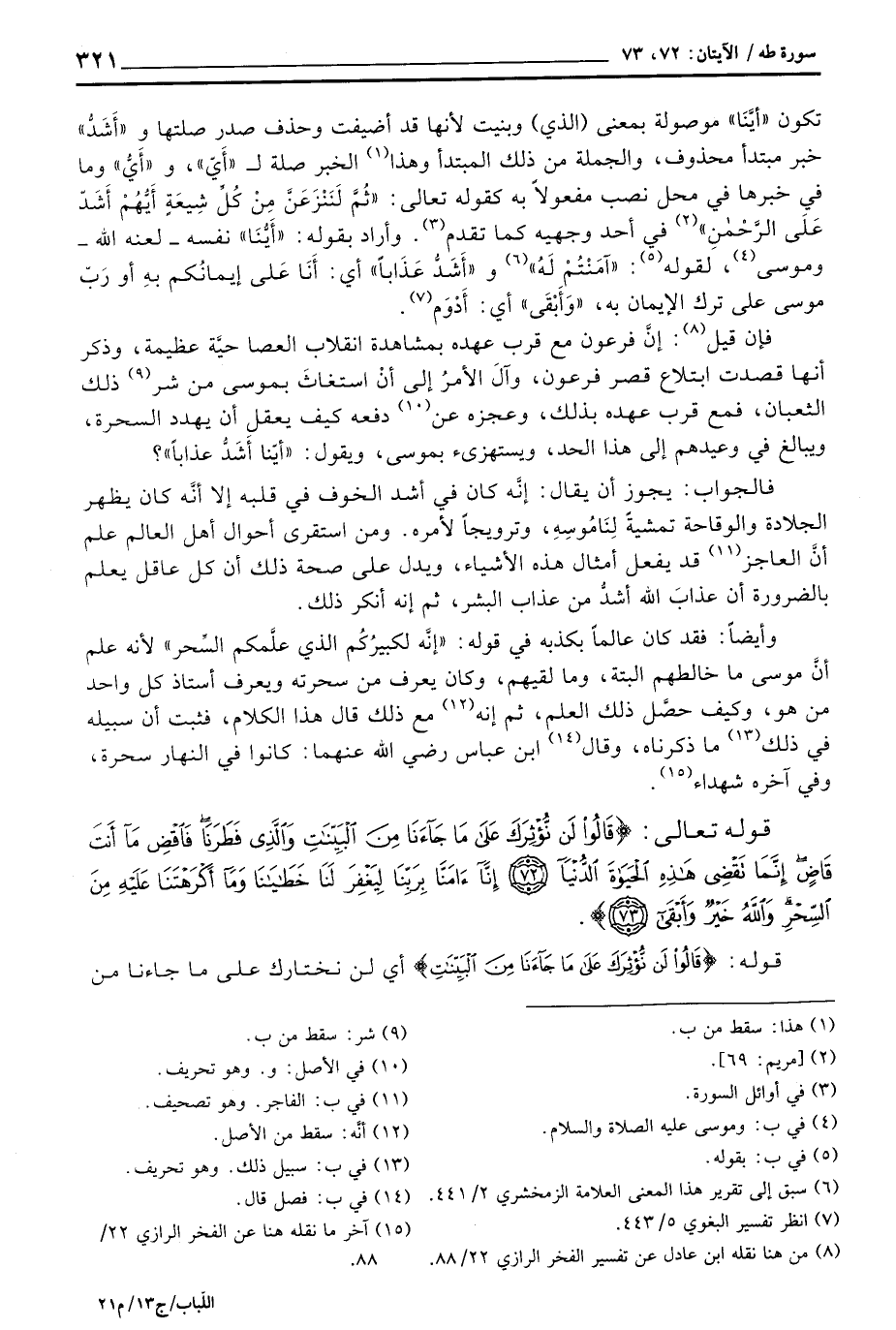تكون «أيْنَا» موصولة بمعنى (الذي) وينبت لأنها قد أضيفت وحذف صدر صلتها و «أَشَدُّ» خبر مبتدأ محذوف، والجملة من ذلك المبتدأ وهذا الخبر صلة ل «أَيّ» ، و «أَيُّ» وما في خبرها في محل نصب مفعولاً به كقوله تعالى: {ثُمَّ لَنَنزِعَنَّ مِن كُلِّ شِيعَةٍ أَيُّهُمْ أَشَدُّ عَلَى الرحمن} [مريم: 69] في أحد وجهيه كما تقدم. و «أَشَدُّ عذاباً» أي: أَنَّا عَلى إيمانُكم بهِ أو رَبّ موسى على تلاك الإيمان به، «وَأَبْقَى» أي: أَدْوَمْ.