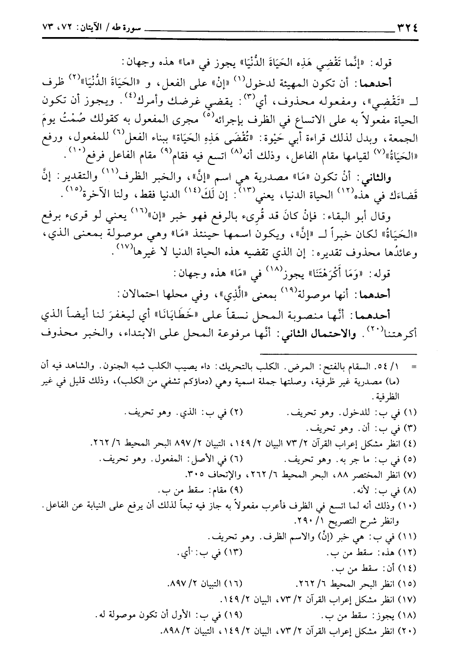أحدهما: أن تكون المهيئة لدخول «إنْ» على الفعل، و «الحَيَاةِ الدُّنْيَا» ظرف ل «تَقْضِي» ، ومفعوله محذوف، أي: يقضي غرضك وأمرك. ويجوز أن تكون الحياة مفعولاً به على الاتساع في الظرف بإجرائه مجرى المفعول به كقولك صُمْتُ يومَ الجمعة، ويدل لذلك قراءة أبي حَيْوَة: «تُقْضَى هَذِهِ الحَيَاة» ببناء الفعل للمفعول، ورفع «الحَيَاةُ» لقيامها مقام الفاعل، وذلك أنه اتسع فيه فقام مقام الفاعل فرفع.