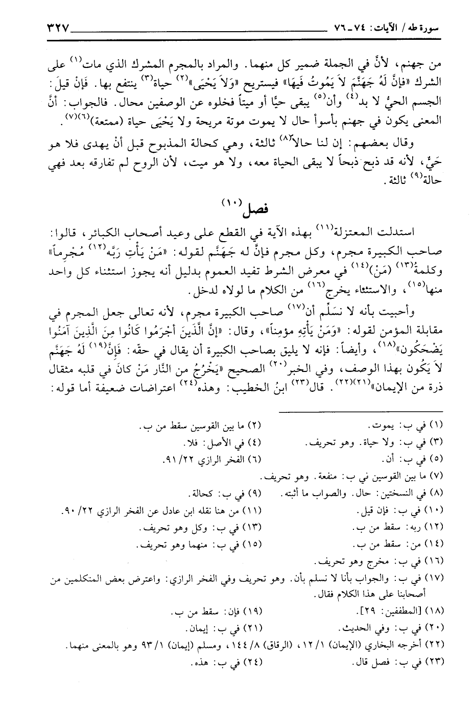 استدلت المعتزلة بهذه الآية في القطع على وعيد أصحاب الكبائر: قالوا: صاحب الكبيرة مجرم، وكل مجرم فإنَّ له جَهَنَّم لقوله: {مَن يَأْتِ رَبَّهُ مُجْرِماً} وكلمةُ (مَنْ) في معرض الشرط تفيد العموم بدليل أنه يجوز استثناء كل واحد منها، والاستثناء يخرج من الكلام ما لولاه لدخل.