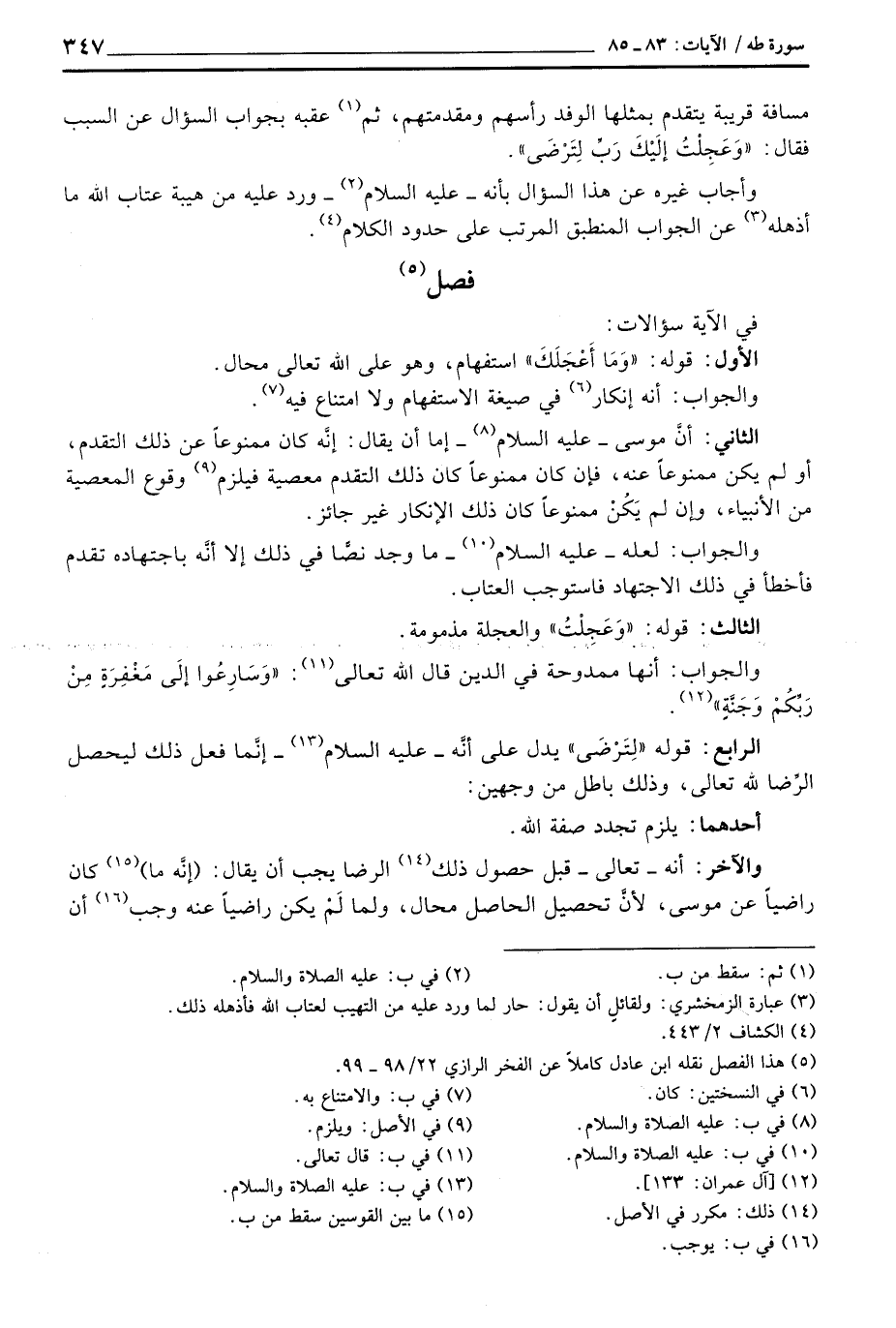 الثاني: أنَّ موسى - عليه السلام - إما أن يقال: إنَّه كان ممنوعاً عن ذلك التقدم، أو لم يكن ممنوعاً عنه، فإن كان ممنوعاً كان ذلك التقدم معصية فيلزم وقوع المعصية من الأنبياء، وإن لم يَكُنْ ممنوعاً كان ذلك الإنكار غير جائز.