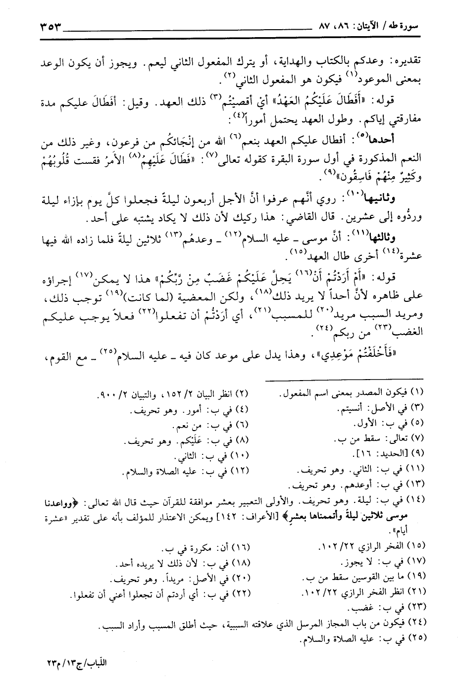 قوله: {أَمْ أَرَدتُّمْ أَن يَحِلَّ عَلَيْكُمْ غَضَبٌ مِّن رَّبِّكُمْ} هذا لا يمكن إجراؤه على ظاهره لأنَّ احداً لا يريد ذلك، ولكن المعضية (لما كانت) توجب ذلك، ومريد السبب مريد للمسبب، أي أرَدْتُّمْ أن تفعلوا فعلاً يوجب عليكم الغضب من ربكم.