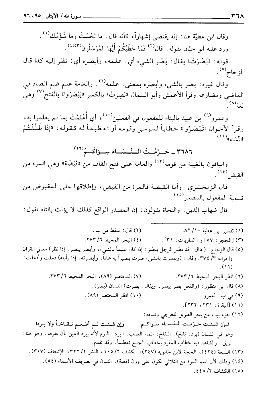 3686 - حَرَّمْتُ النِّسَاءَ سِوَاكُمُ ... والباقون بالغيبة من قومه والعامة على فتح القاف من «قَبْضَة» وهي المرة من القبض.