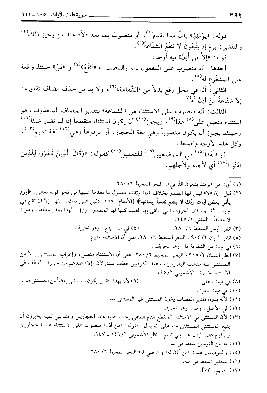 الثالث: أنه منصوب على الاستثناء من «الشفاعة» بتقدير المضاف المحذوف وهو استثناء متصل على هذا، ويجوز أن يكون استثناء منقطعاً إذا لم نقدر شيئاً وحينئذ يجوز أن يكون منصوباً وهي لغة الحجاز، أو مرفوعاً وهي لغة تميم، وكل هذه الأوجه واضحة.
