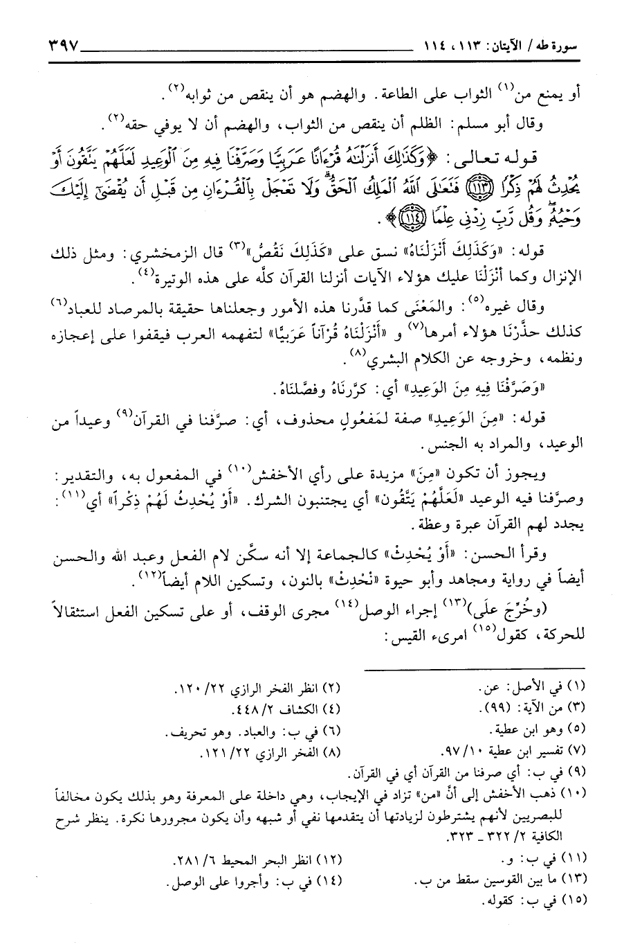 وقال غيره: والمَعْنَى كما قدَّرنا هذه الأمور وجعلناها حقيقة بالمرصاد للعباد كذلك حذَّرْنَا هؤلاء أمرها، {أَنزَلْنَاهُ قُرْآناً عَرَبِيّاً} لتفهمه العرب فيقفوا على إعجازه ونظمه، وخروفه عن الكلام البشري.